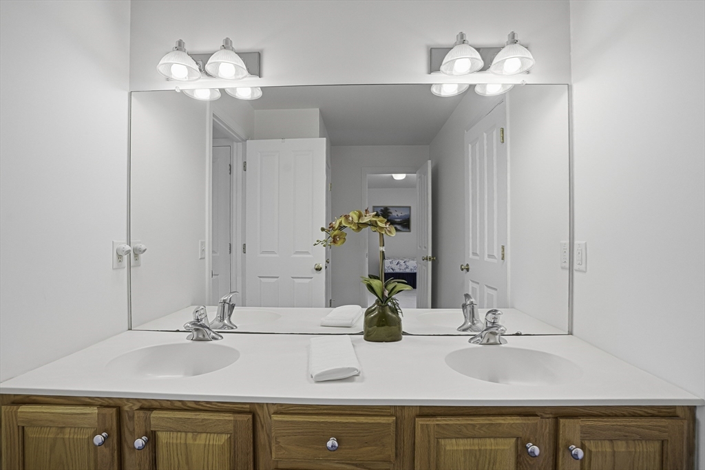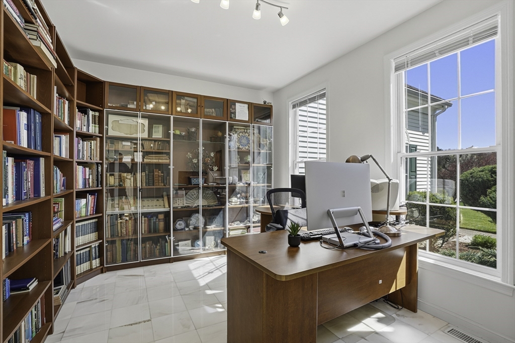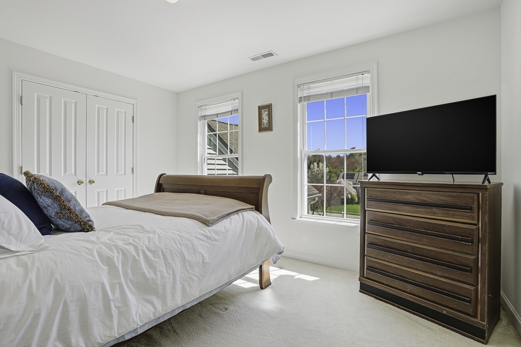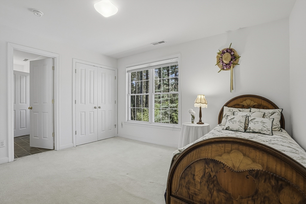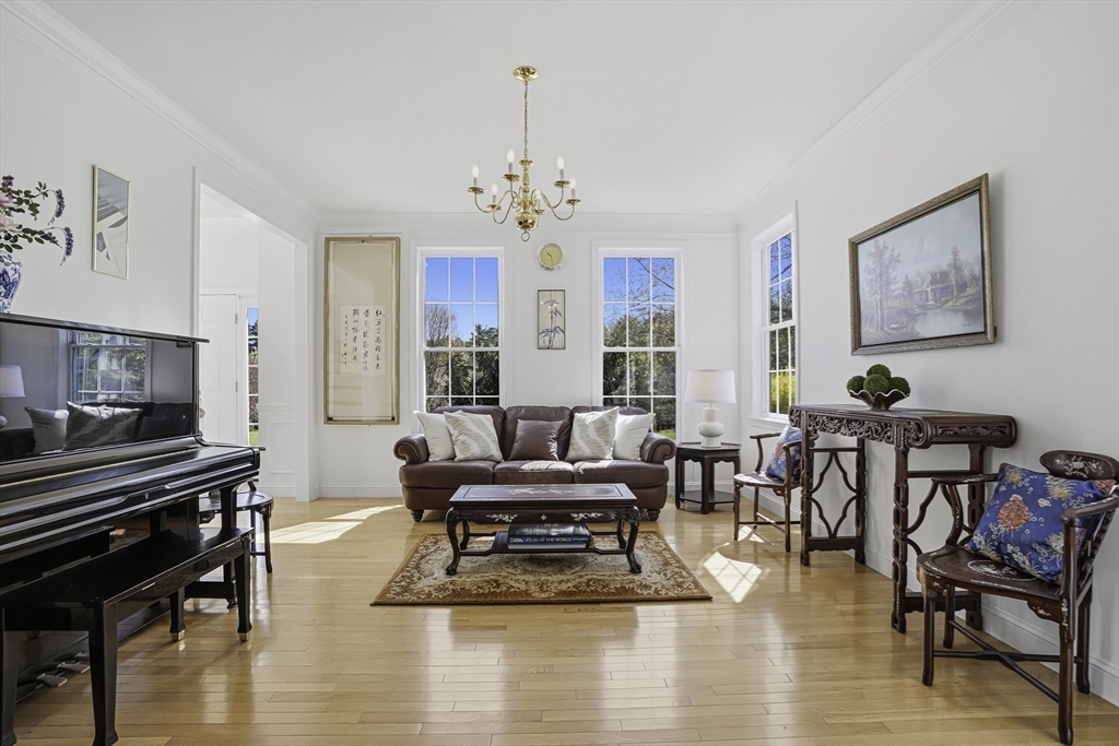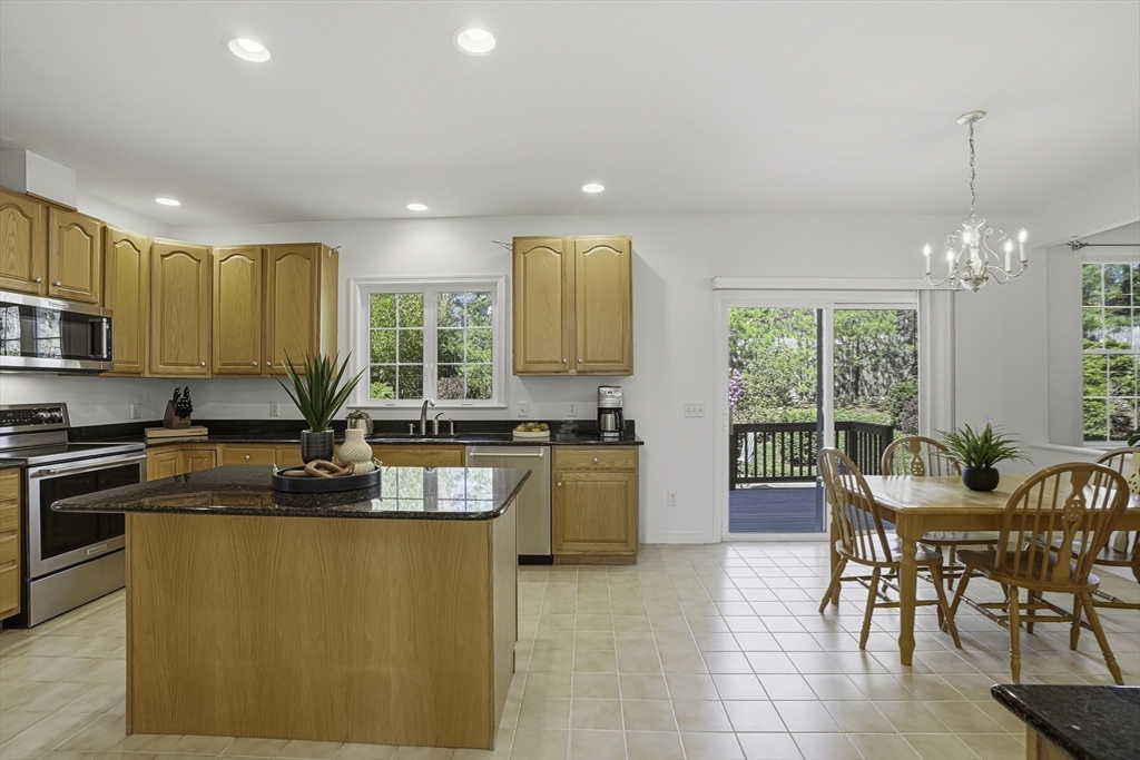 Striking 4-bedroom, 3.5-bathroom "Wellington" Colonial set on a scenic park-like setting in highly regarded Hopkinton Meadows. Two story foyer opens to sun-drenched chef's kitchen boasting sleek cabinets, granite counters, pantry & breakfast island that flows into family room anchored by a gas-fired fireplace. For formal hosting, the elegant dining room provides refined living, while the home office with French doors & living room offers quiet retreats. The primary suite offers a sanctuary w sitting room, spa-inspired bathroom & walk-in closet w ~200 sq. ft to expand! A private ensuite guest room + 2 more spacious bedrooms, both filled w light & access to J&J full bath. Wine cellar & workshop in lower level ready for gym & more. Highlights include natural gas, 3-car garage, veggie garden & pear trees! Situated in peaceful neighborhood adjacent to conservation & trails, this home offers easy access to top schools, commuter rail & 495/90, perfectly balancing serenity & accessibility.