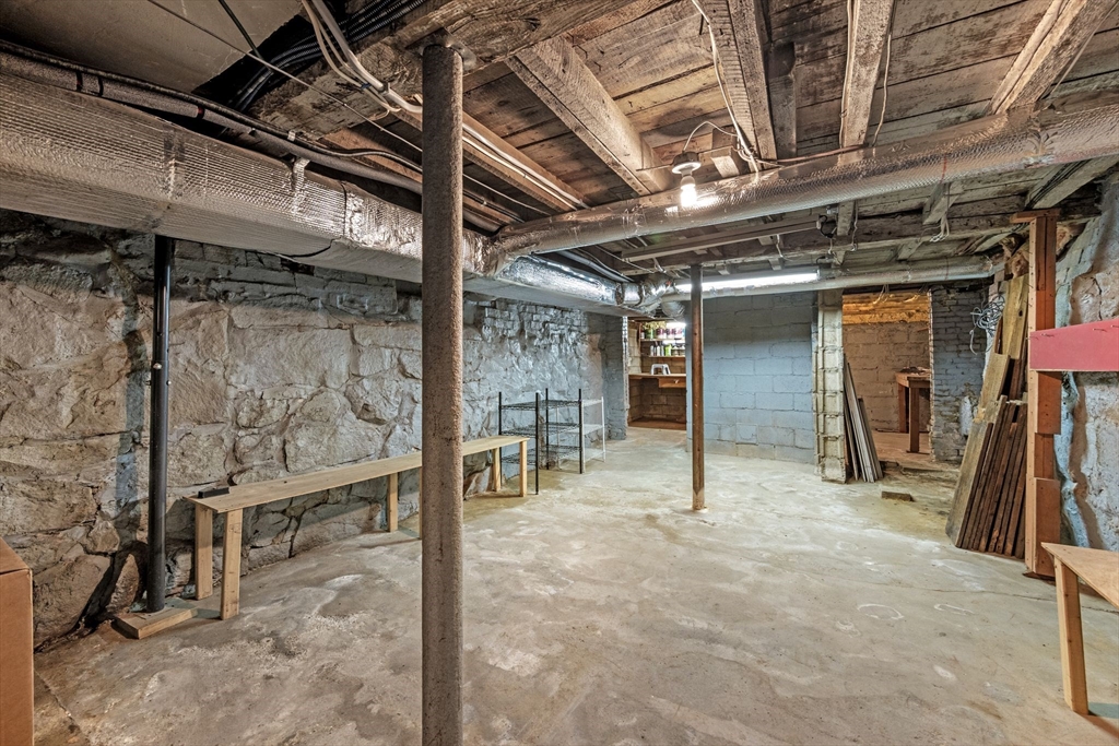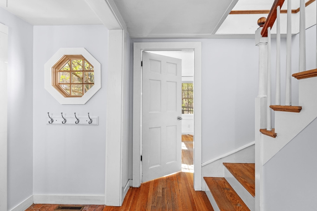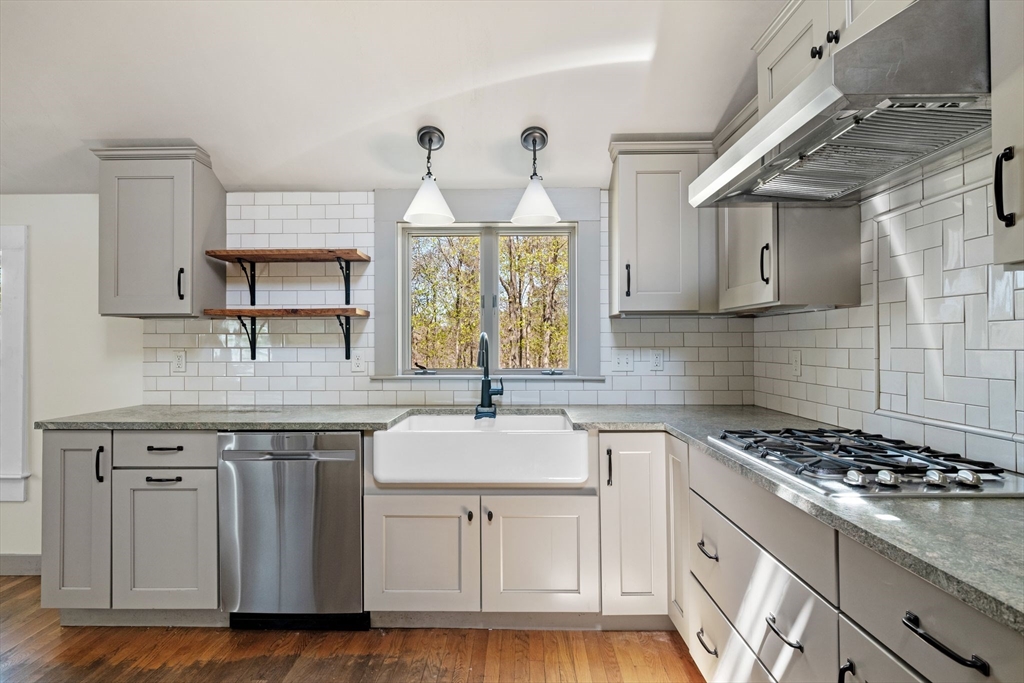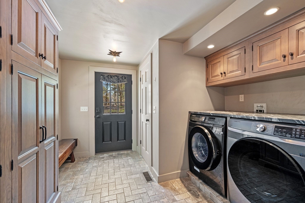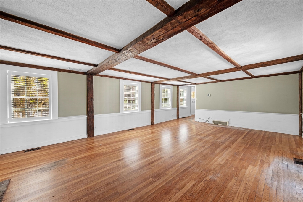 Welcome to 1 Chestnut- a beautiful, move in ready home offering a perfect blend of character and modern comfort on a spacious lot in North Reading, located in the desirable Batchelder School District. Bright, open kitchen features vaulted ceiling with exposed wood beams, shaker cabinetry, leather granite countertops, stainless steel appliances, and subway tile backsplash. The oversized living room offers hardwood floors, rustic beam detail, and a cozy fireplace- perfect for entertaining. Convenient mudroom/laundry area with added storage. Four bedrooms with one being conveniently located on the first floor along with two full bathrooms with modern finishes. Enjoy abundant natural light throughout and a large outdoor fenced in space offering both privacy and flexibility. Plenty of storage in the full basement that leads to an underneath 1 car garage/ storage space.