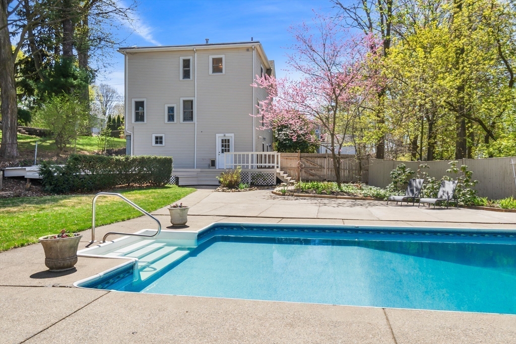 Looking for space, charm, and flexibility in one of Stoneham’s most sought-after locations? This 4-bedroom, 2.5-bath Colonial with farmhouse influences delivers on all fronts, starting with an inviting oversized farmer’s porch perfect for morning coffee or unwinding at the end of the day. Inside, a seamless, well-designed layout offers a welcoming fireplaced living room that flows into a versatile bonus room ideal for a home office, playroom, or flex space, along with two staircases, a spacious eat-in kitchen, and a bright, inviting dining room designed for everyday living and entertaining. Upstairs features four generously sized bedrooms and a full bath, while the beautifully finished lower level with separate exterior access adds exceptional versatility for multi-generational living, guest space, or extended recreation. Step outside to your own private, resort-like backyard oasis with a spacious deck and inground pool, perfect for entertaining, relaxing weekends, and enjoying summer.