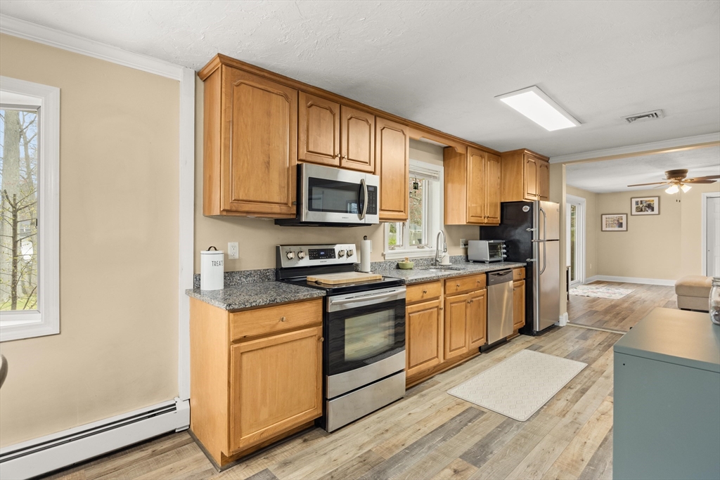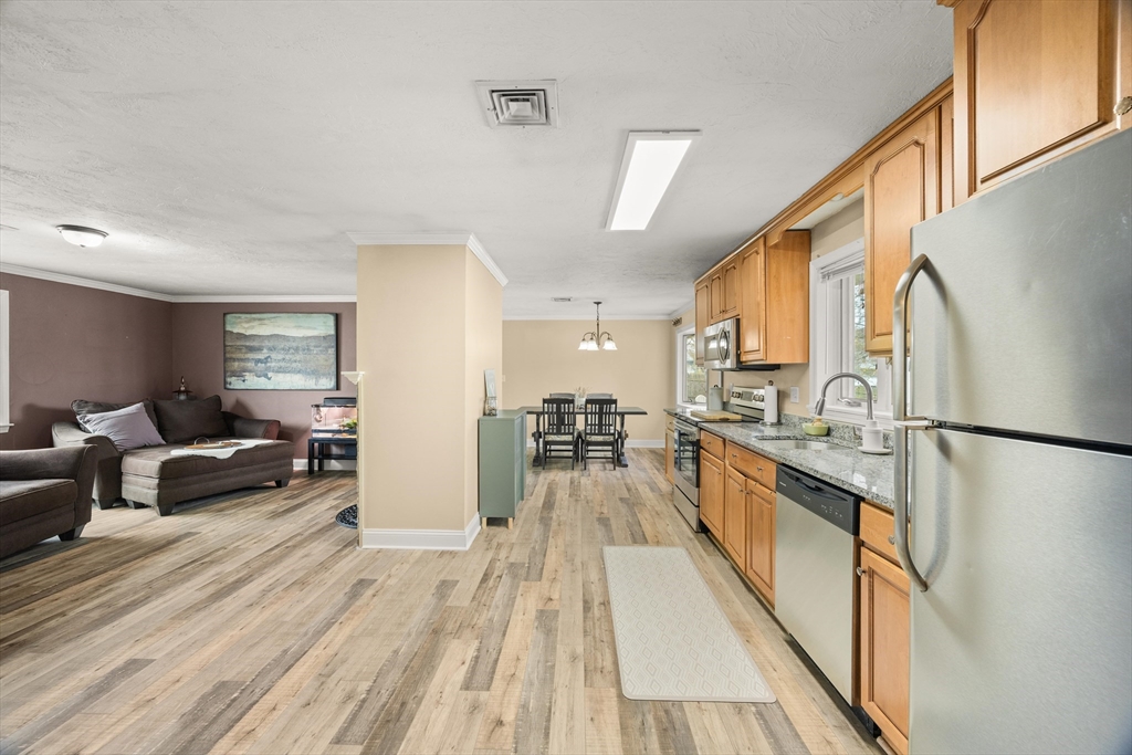 Presenting a meticulously maintained single-family residence, 172 Lisa Dr, spanning 1394 square feet, epitomizing an inviting, move-in-ready home. This property offers a harmonious blend of classic ranch architectural style with contemporary comforts, designed for sophisticated living. The kitchen, thoughtfully integrated into an open plan with the living room, features sleek stainless steel appliances and elegant stone counters, creating an ideal setting for both casual meals and refined entertaining. The residence encompasses three well-proportioned bedrooms and one full bathroom, providing comfortable accommodations. The exterior of this property is equally compelling, featuring a private yard, a dedicated fire pit area, an inviting outdoor dining space, and a patio, all contributing to a comprehensive outdoor living experience. To truly appreciate the refined lifestyle offered at 172 Lisa Dr, we invite you to schedule a private viewing. Open House: Saturday & Sunday, 11-12:30.