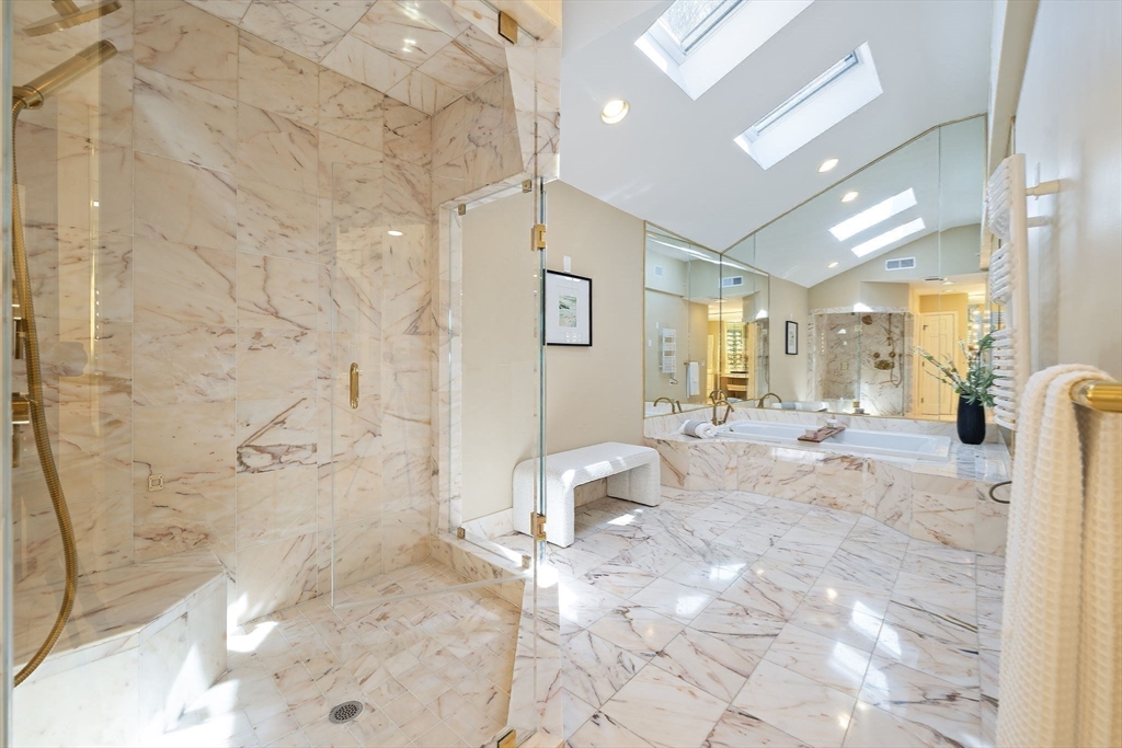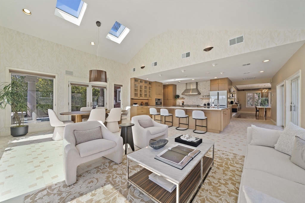 Set on nearly half an acre of level land in Newtonville, this rare ranch-style residence offers exceptional scale, privacy, and resort-style living, enhanced by abundant natural sunlight and multiple skylights throughout. Extensively improved by the current owner, the home features a recently renovated brand-new kitchen, four spacious en-suite bedrooms, and seven bathrooms—ideal for multigenerational living, guests, or flexible work-from-home needs. Expansive living areas create a bright, airy atmosphere rarely found at this scale. The outdoor setting includes a heated in-ground pool and a separate pool house with sauna, full bath, and bar with sliding service window—perfect for seamless indoor–outdoor entertaining. A sun-filled flat half-acre lot and versatile ranch-style layout make this a rare opportunity to enjoy large-scale living with resort-style amenities in one of Newtonville’s most desirable locations.