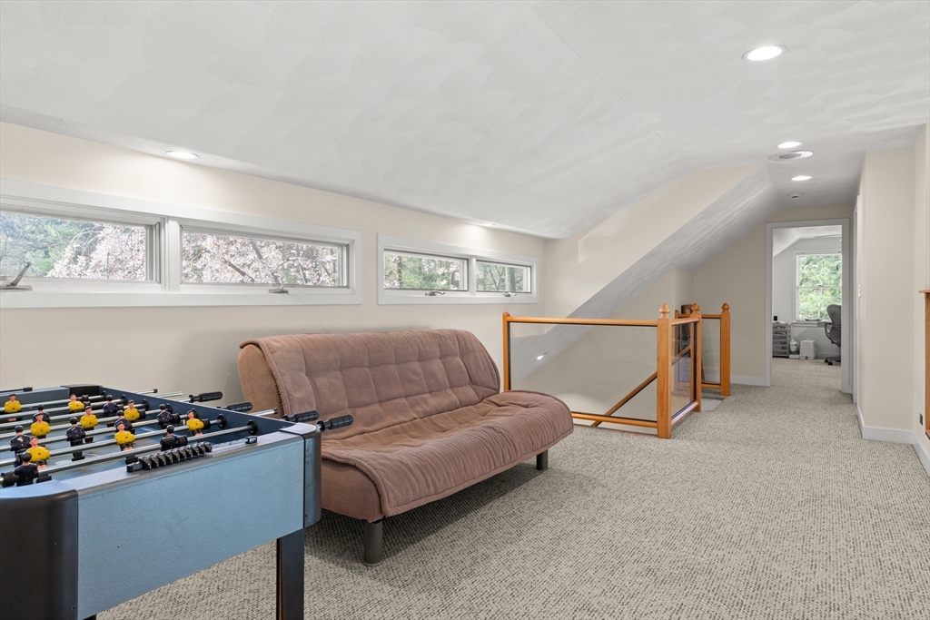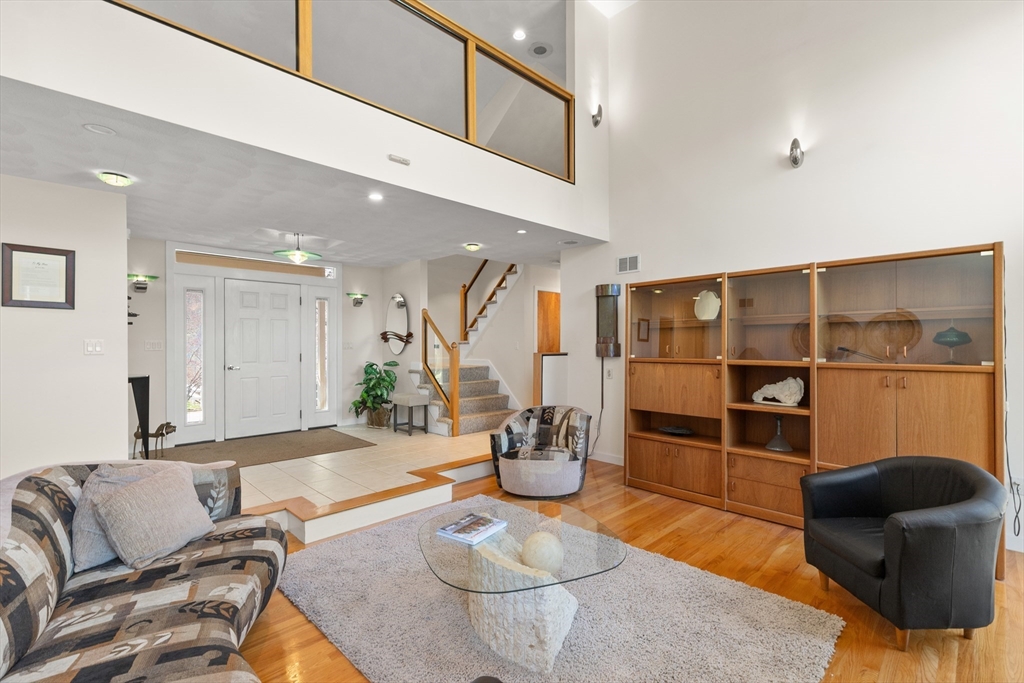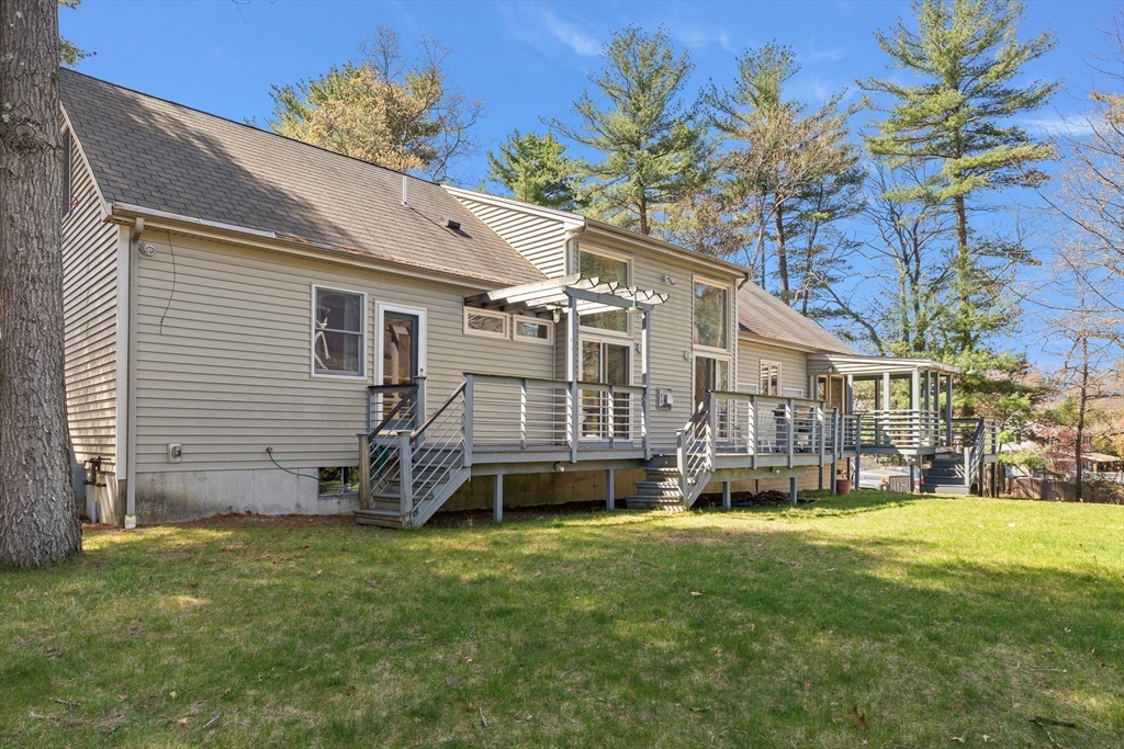Lovingly cared for contemporary Cape w/ a flexible floor plan in a super neighborhood w/ easy access to major routes, shopping & schools. The 2-story entry leads to a stunning step-down great room w/ gas fireplace. You'll love cooking in this skylit kitchen w/ tremendous cabinet space, large dining area, recessed & pendant lighting & access to a big deck. French doors lead to a cozy family room w/ gleaming HW floors. There are 2 bedrooms including the primary w/ its private 3/4 bath & exterior access, laundry & 2nd bath, all on the first floor. Upstairs is a loft flanked by 2 additional bedrooms + a bath, perfect for guests, hobbies or more. The heated basement, plumbed for a bath offers room to grow w/ its finished rec room. The heating & electrical are beyond compare: 2 zone hydronic systems, 200 amp service, dual panels, hook-up for a generator, emergency lighting w/ battery backup, & motion sensors. There's an over-sized 2-car garage, circular drive, large storage shed. A real gem!