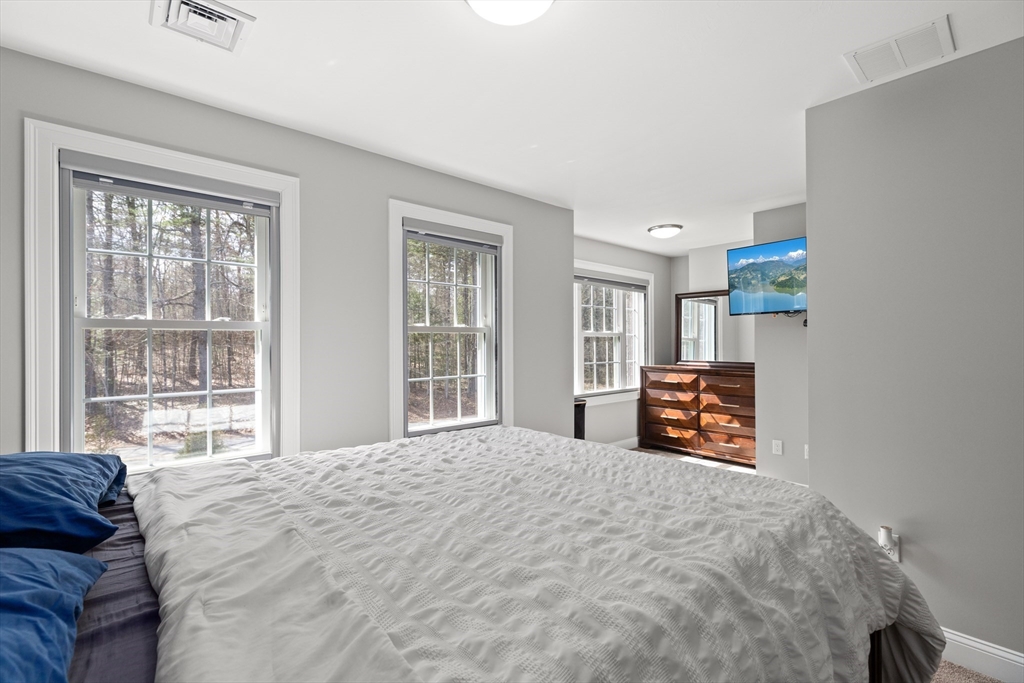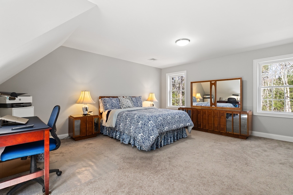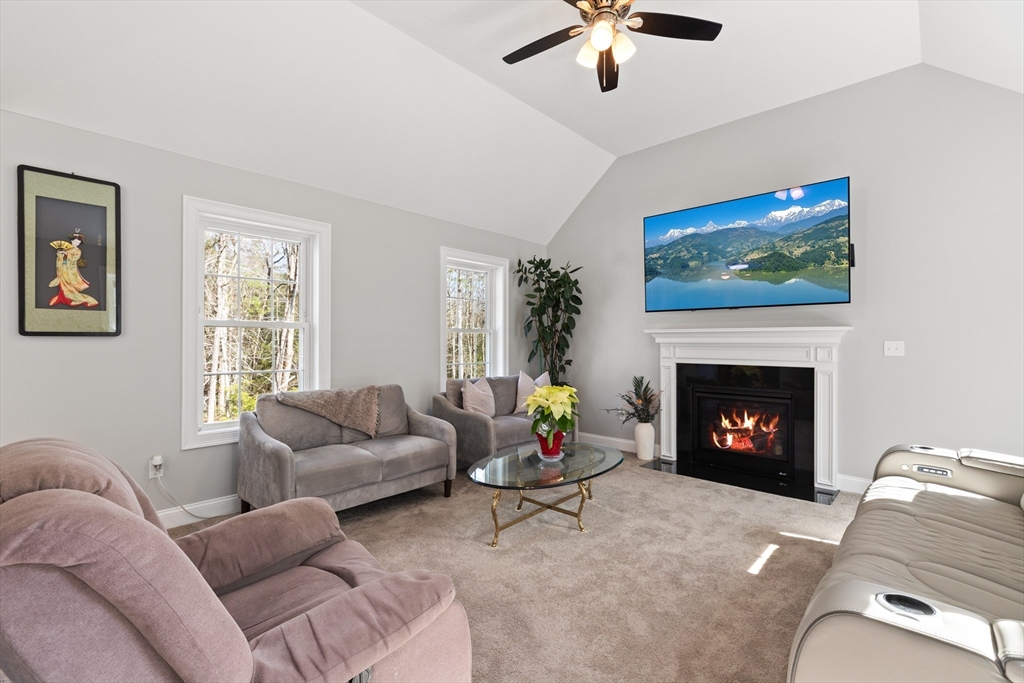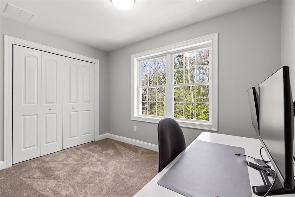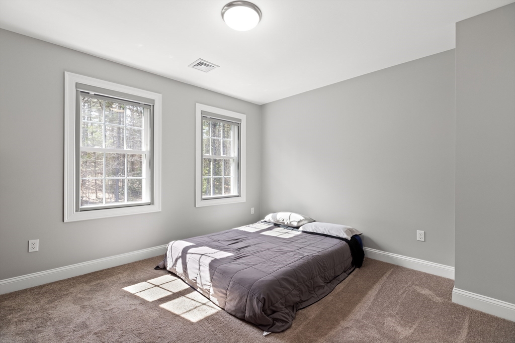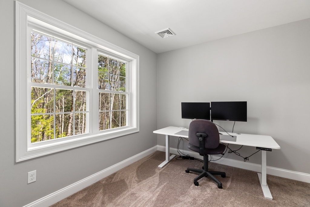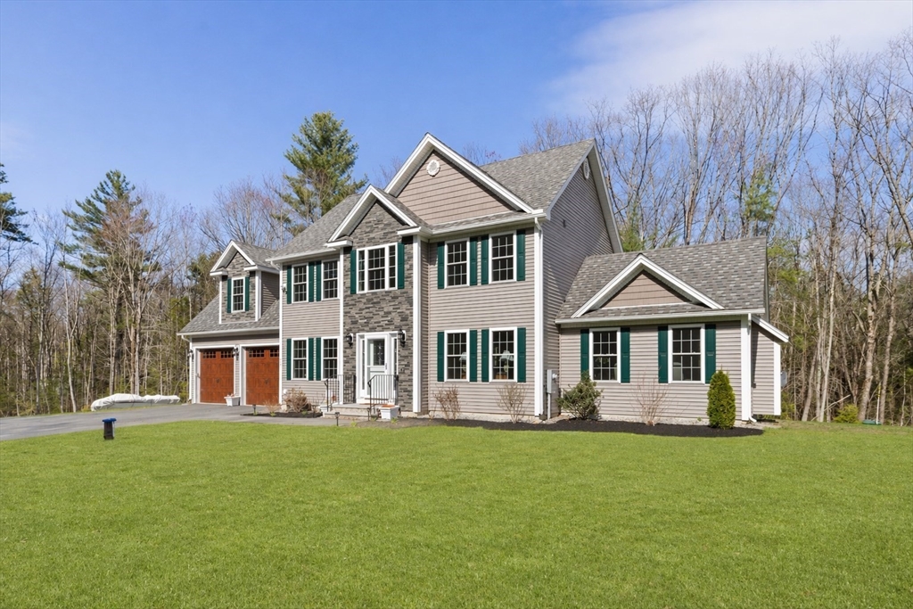 Experience the pinnacle of modern craftsmanship in this 2024 Applewood Deluxe, perfectly situated across from protected state conservation land & framed by a tranquil backyard brook. The interior radiates sophistication with stunning hickory flooring throughout a layout that balances a private home office with expansive formal living and family rooms—the latter featuring soaring cathedral ceilings and a cozy gas fireplace. A chef’s kitchen serves as the heart of the home, boasting granite counters, a wine/coffee bar, and premium ss appliances, while the mudroom with custom built-ins ensures daily organization. Upstairs, the oversized primary suite offers a true sanctuary with dual walk-in closets and a spa-like tile shower, complemented by 3 additional bedrooms and a conveniently located laundry room. From the elegant granite entryway to the privacy-enhancing upgraded landscaping, this estate offers a serene, high-end retreat with effortless access to Route 2 and local hiking trails.