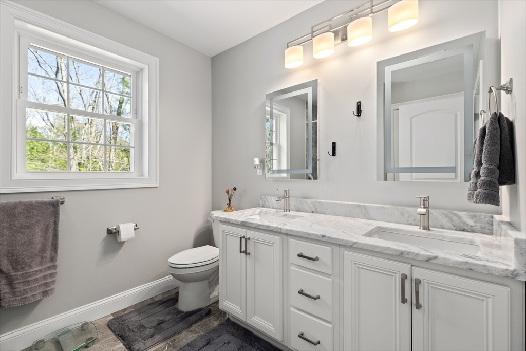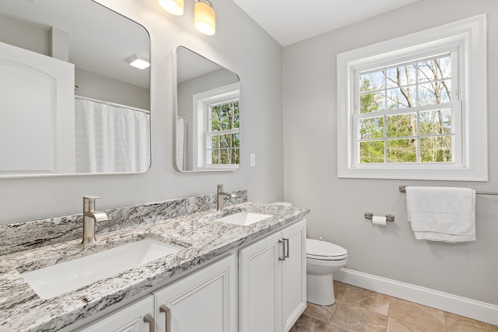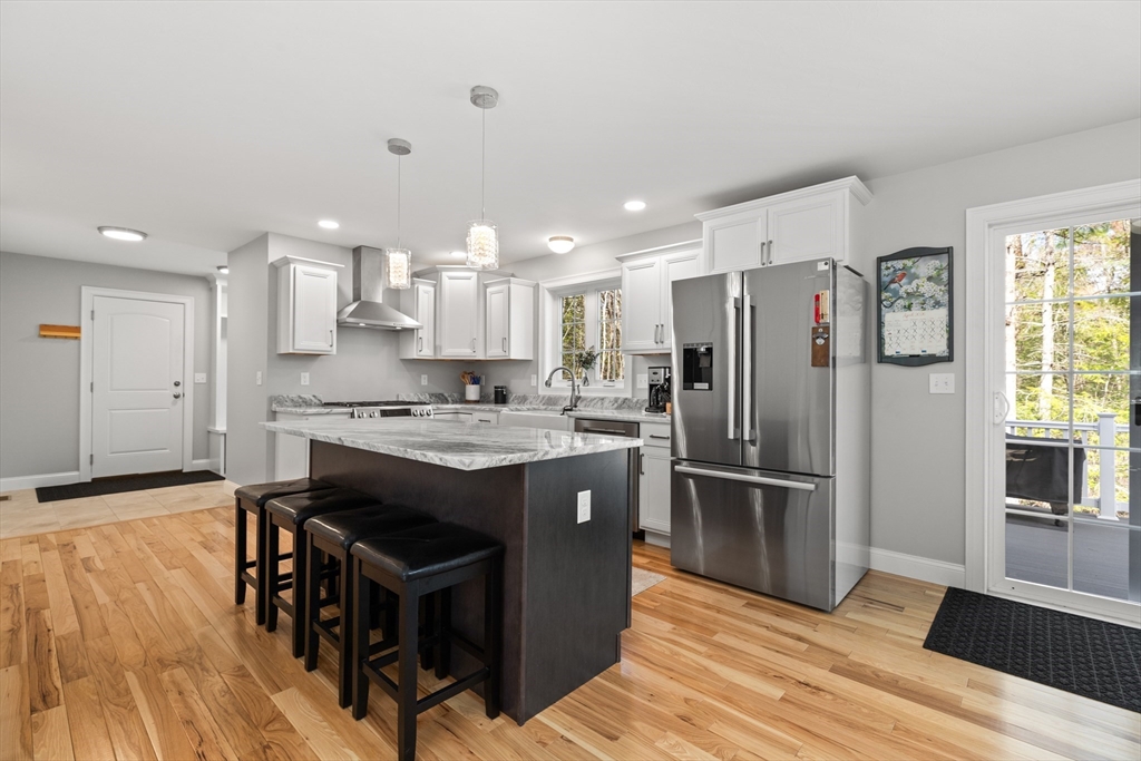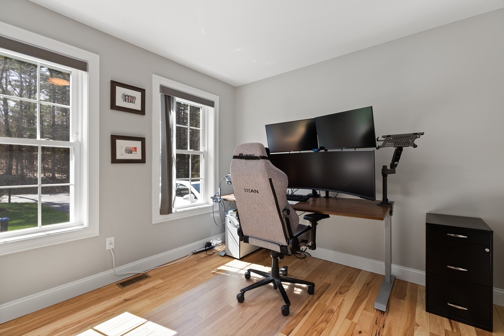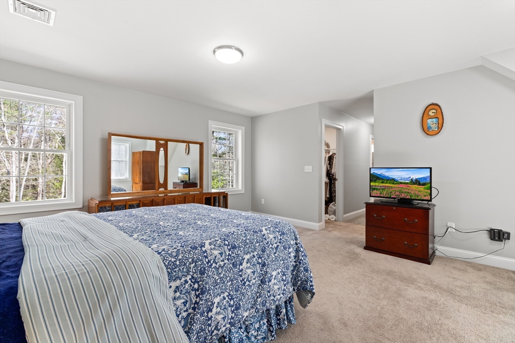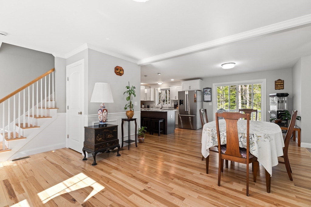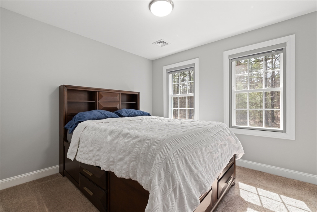 Experience the pinnacle of modern craftsmanship in this 2024 Applewood Deluxe, perfectly situated across from protected state conservation land & framed by a tranquil backyard brook. The interior radiates sophistication with stunning hickory flooring throughout a layout that balances a private home office with expansive formal living and family rooms—the latter featuring soaring cathedral ceilings and a cozy gas fireplace. A chef’s kitchen serves as the heart of the home, boasting granite counters, a wine/coffee bar, and premium ss appliances, while the mudroom with custom built-ins ensures daily organization. Upstairs, the oversized primary suite offers a true sanctuary with dual walk-in closets and a spa-like tile shower, complemented by 3 additional bedrooms and a conveniently located laundry room. From the elegant granite entryway to the privacy-enhancing upgraded landscaping, this estate offers a serene, high-end retreat with effortless access to Route 2 and local hiking trails.
