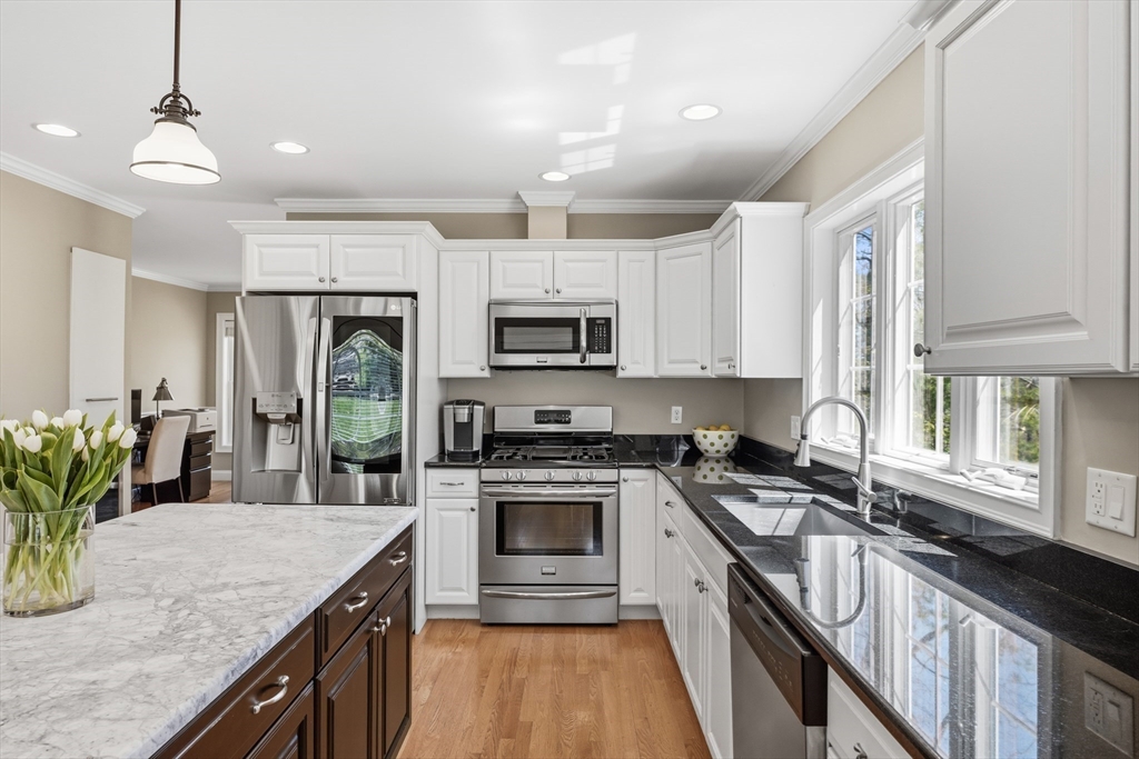 Beautiful Colonial in a sought-after area of Beverly, ideally located near the commuter rail, beaches, shops, and restaurants. Built in 2012, this 4-bedroom, 2 full and 2 half bath home offers a spacious, open floor plan designed for both everyday living and entertaining. The updated kitchen includes stainless steel appliances, a center island, and dining area, open to the family room. A well-appointed living room with gas fireplace serves as a comfortable secondary gathering space. Upstairs, there are four bedrooms including a primary suite with a full bath and generous walk-in closet. A third-floor walk-up loft provides additional living space, while the finished basement offers a spacious bonus room and half bath. Enjoy the expansive patio and outdoor space, along with a two-car garage offering ample storage.