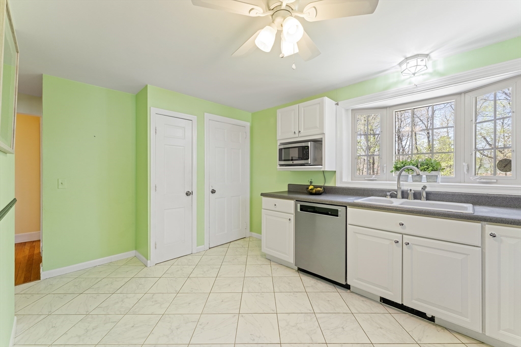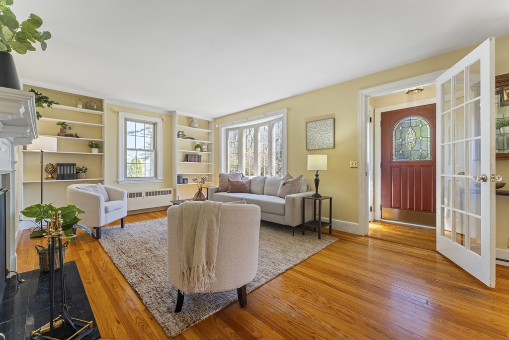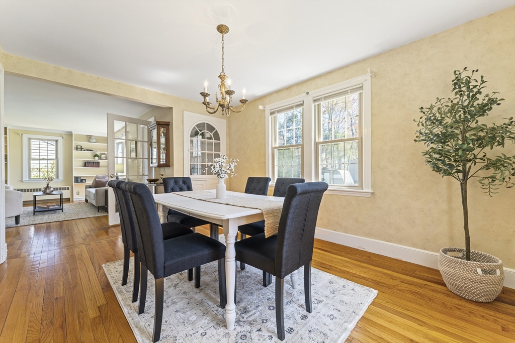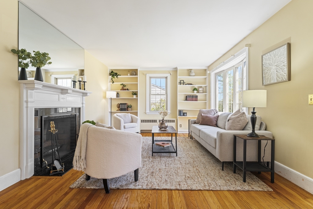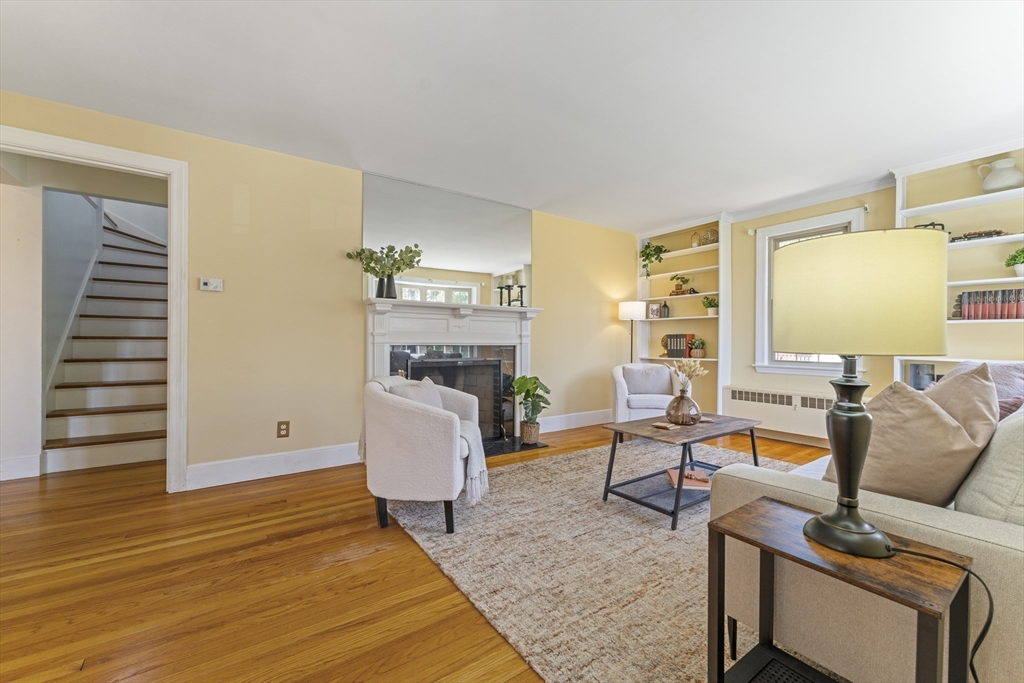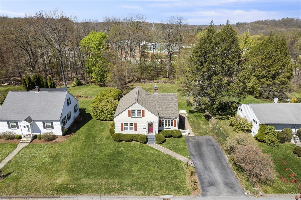 This cherished home sparkles with bespoke midcentury details! Enter through the vestibule and discover a built-in hutch & bookshelves, fireplace mantle, sunny bay window and hardwood floors throughout living and formal dining room. Large eat-in kitchen updated in 2014 with white cabinetry, pantry closet and recent stainless steel appliances. 1st flr primary bedroom with wire closet storage system and a full bathroom just down the hall. Upstairs offers 2 additional BRs, flexible loft/office space and a convenient half-bath. Plus plenty of bonus storage tucked into the eaves. The back door opens onto an inviting patio overlooking a level, grassy back yard - perfect for outdoor summer fun! Low maintenance vinyl siding/windows. Professional basement waterproofing and sump pump for peace of mind. Find all of this tucked away in a coveted N Worc neighborhood with excellent access to local shopping & amenities. Property abuts conservation land with walking path to Nelson Place School.