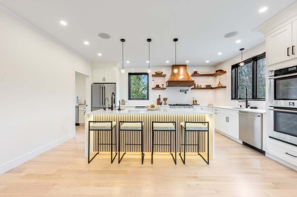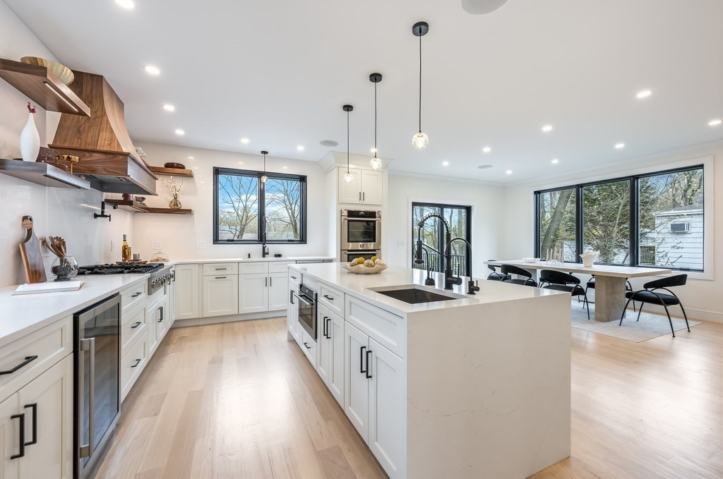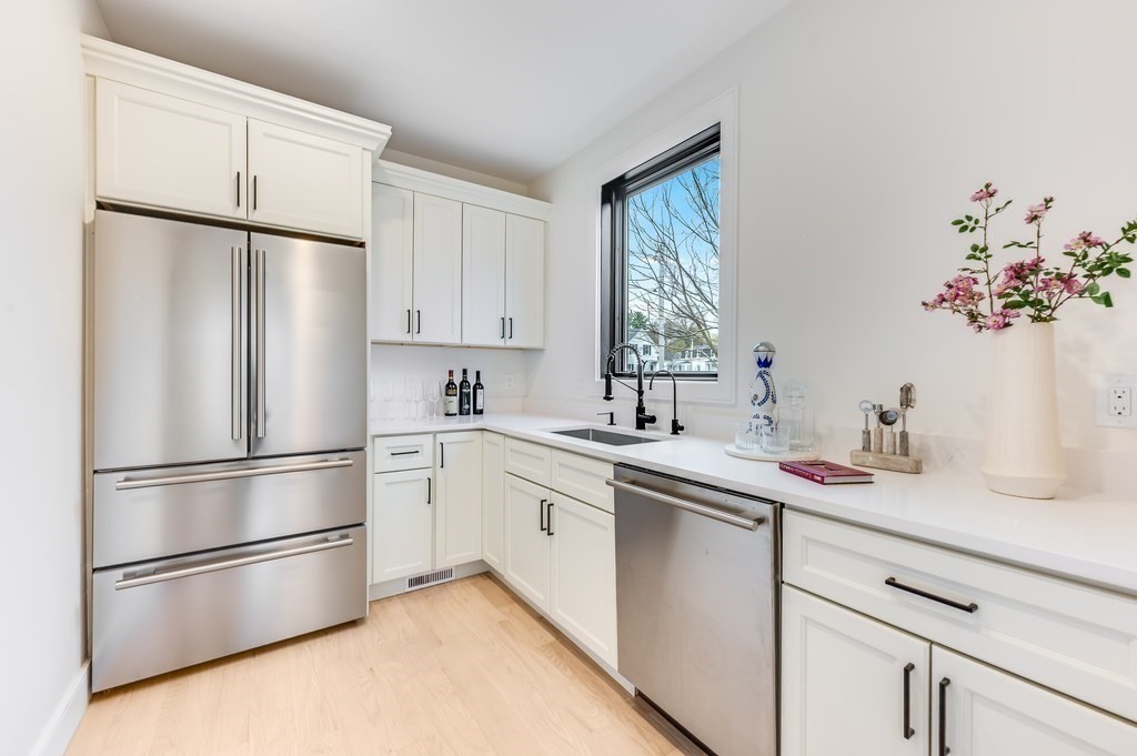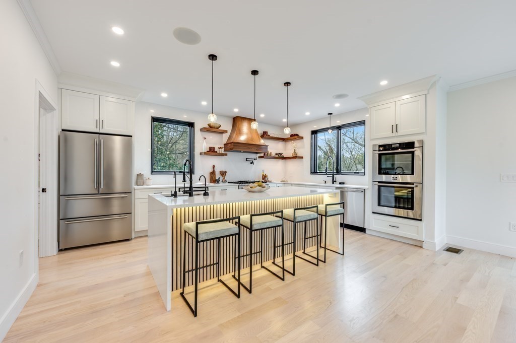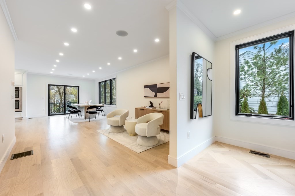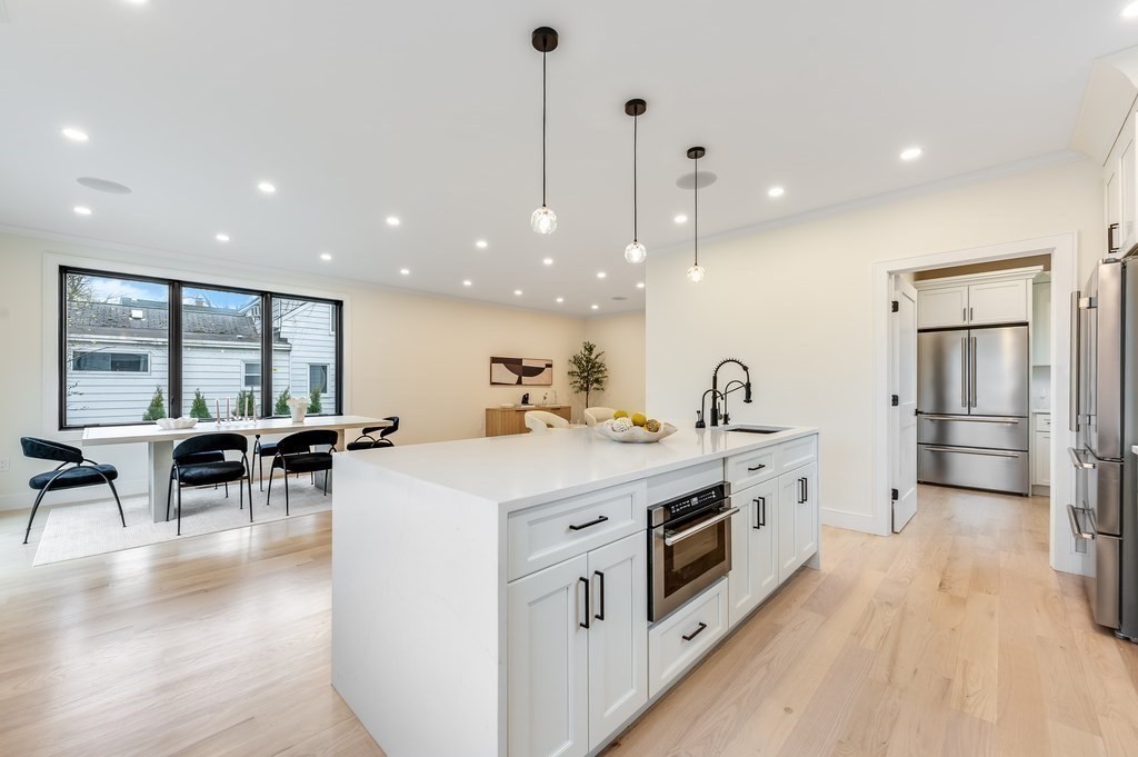 This exceptional home offers approximately 3,250 sq. ft. of thoughtfully designed living space with 4 spacious bedrooms and 4 beautifully finished full baths featuring Italian stone and tile. The sun-filled open living and dining area flows seamlessly to a large deck, patio, and fenced yard—perfect for everyday living and entertaining. The chef’s kitchen features high-end Forno Alta Qualita appliances, two dishwashers, Pella windows, designer lighting, and a full walk-in pantry. Additional highlights include three full-size refrigerators, including one in the pantry and one in the lower-level suite, plus whole-house speakers, second-floor laundry, ample storage, and a high-efficiency Lochinvar boiler. The flexible lower level offers an au pair/in-law suite with living area, full bath, private laundry, and its own refrigerator. Ideally located near downtown, commuter rail, schools, shops, dining, and trails.