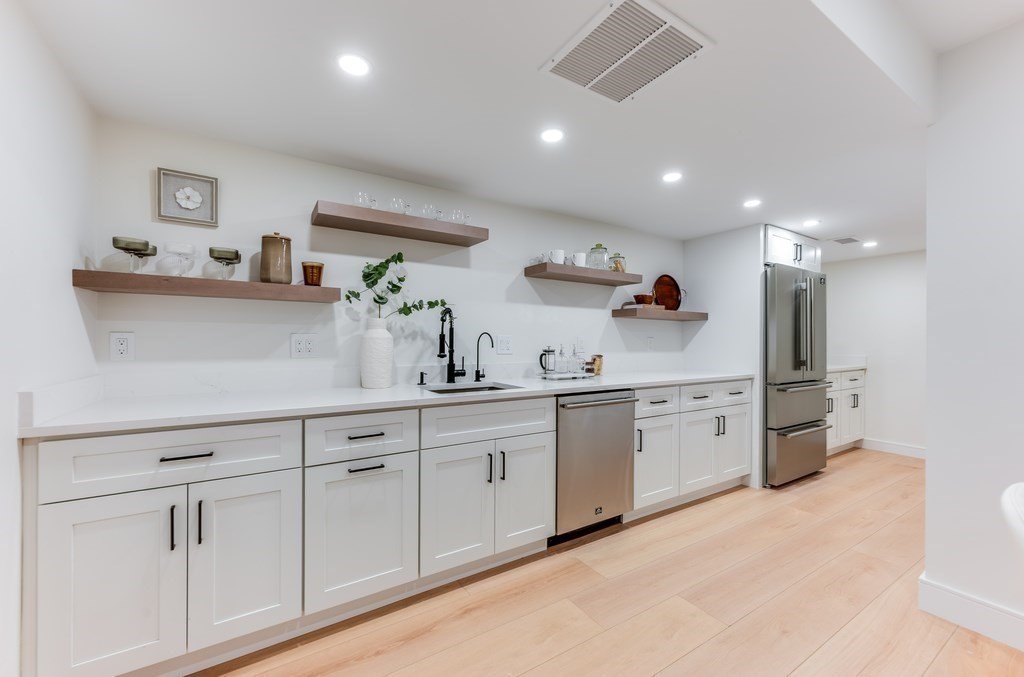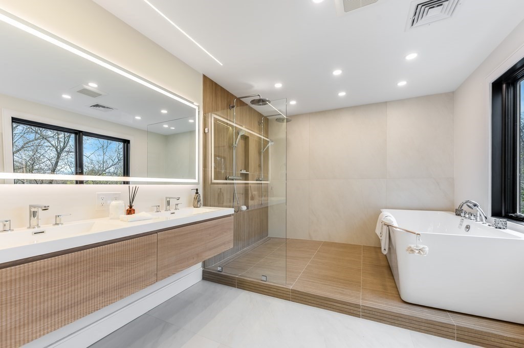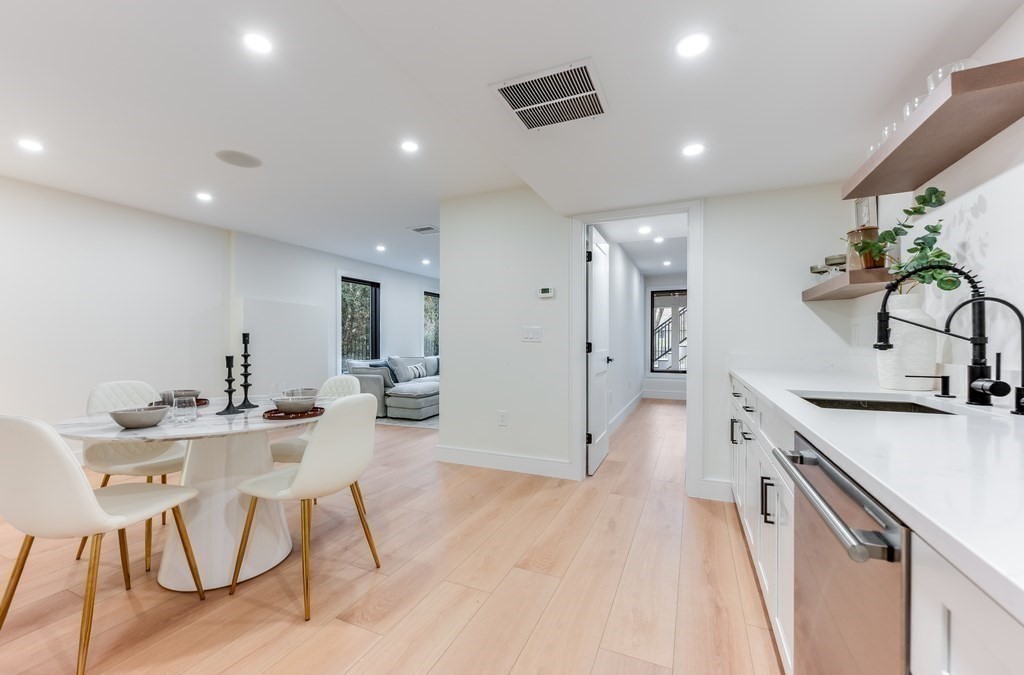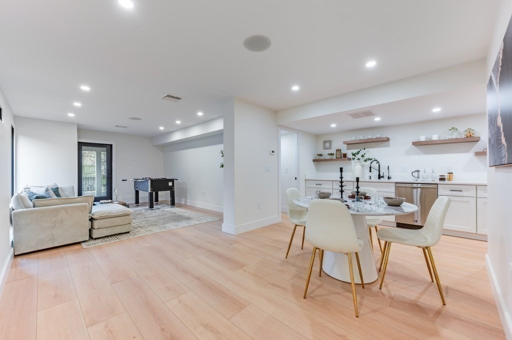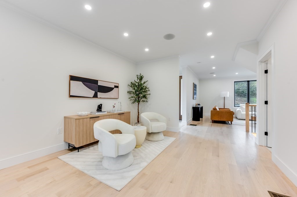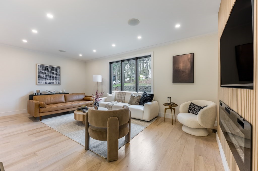 This exceptional home offers approximately 3,250 sq. ft. of thoughtfully designed living space with 4 spacious bedrooms and 4 beautifully finished full baths featuring Italian stone and tile. The sun-filled open living and dining area flows seamlessly to a large deck, patio, and fenced yard—perfect for everyday living and entertaining. The chef’s kitchen features high-end Forno Alta Qualita appliances, two dishwashers, Pella windows, designer lighting, and a full walk-in pantry. Additional highlights include three full-size refrigerators, including one in the pantry and one in the lower-level suite, plus whole-house speakers, second-floor laundry, ample storage, and a high-efficiency Lochinvar boiler. The flexible lower level offers an au pair/in-law suite with living area, full bath, private laundry, and its own refrigerator. Ideally located near downtown, commuter rail, schools, shops, dining, and trails.