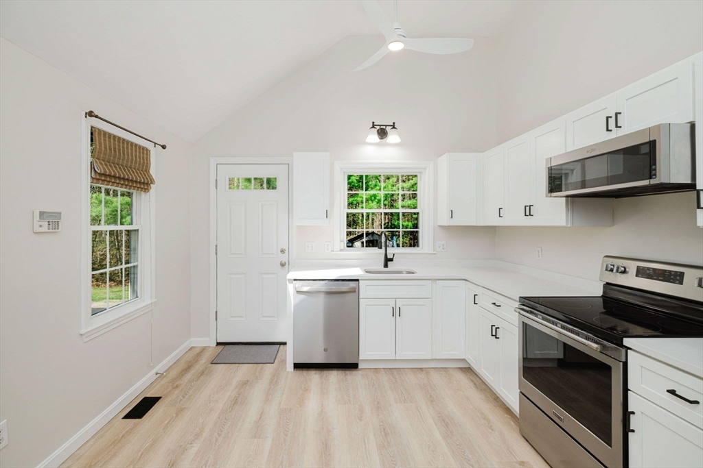 Welcome Home to this beautifully well maintained and recently updated split entry home. This move in ready home offers 3 spacious bedrooms and 1.5 baths with just under 1300 sq feet of living pace. The inviting interior offers a functional layout with generous living area, Brand-new Kitchen with quartz countertops, new vinyl plank flooring, finished basement perfect for family room, home office rec room. Enjoy the outdoor freshly painted deck as you move in. Natural gas heating adds efficiency and convenience along with Central air for year round comfort. Set on the end of the cul-de-sac on just over 2 acres on a very desirable neighborhood within minutes of rte 140 and 495 for easy commuting. Whether you're entertaining, relaxing outdoors or simply looking for a home in immaculate condition, this is the one. It provides the ideal balance of open space and tranquility while still being close to everyday amenities. Check it out at the open house Sat 11-1PM and make an offer...
