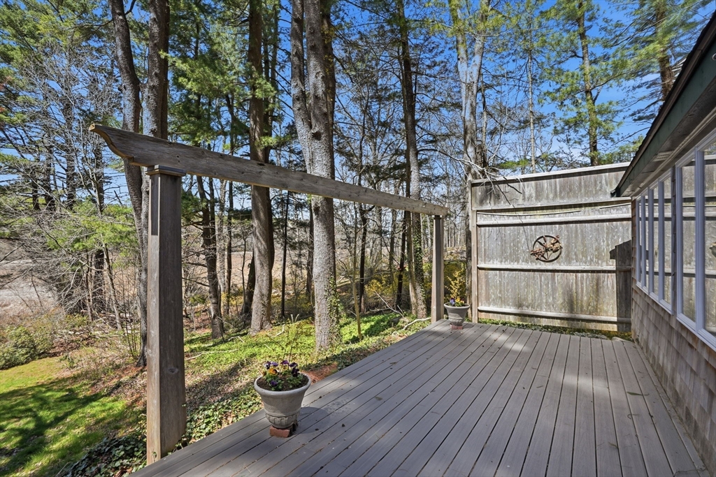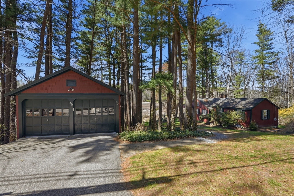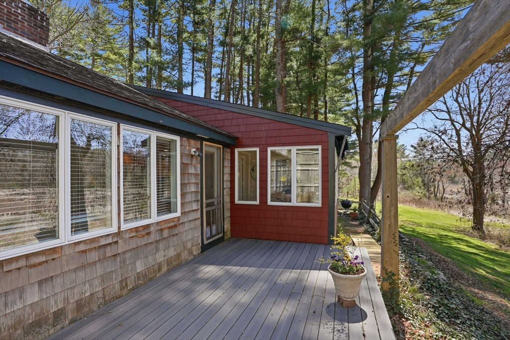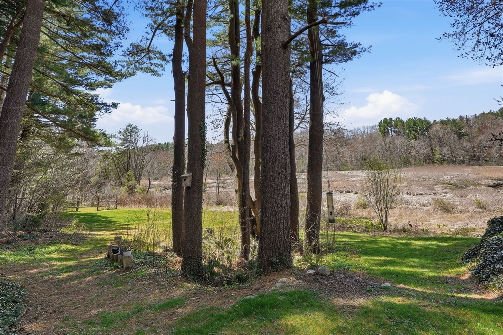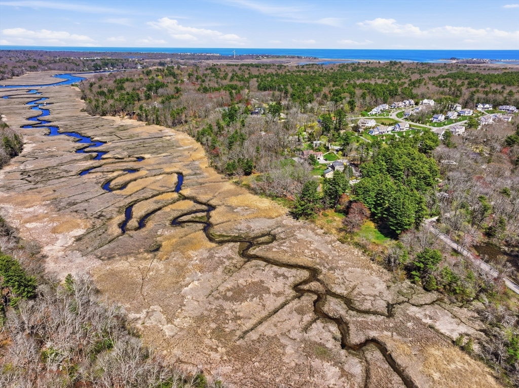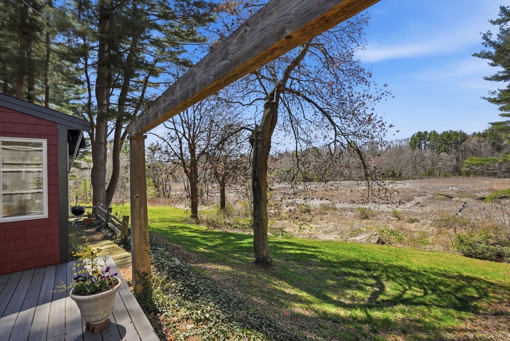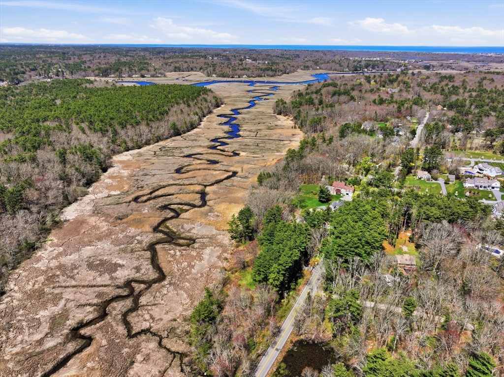 Wake up to river views and end your days with sunsets over the salt marsh. Set on two serene acres overlooking an estuary of the historic North River, this property offers privacy, natural beauty, and effortless indoor-outdoor living. Surrounded by tall trees, lush lawn, and ivy ground cover, the home feels like a retreat. Inside, a bright open floor plan connects kitchen, dining, and living areas, with walls of glass framing the landscape. Step onto the private deck to take in the views. This ranch offers 3 bedrooms, 2 baths, hardwood floors, a fireplace, and gas heat. Detached 2-car garage with storage below. A peaceful yet convenient location.