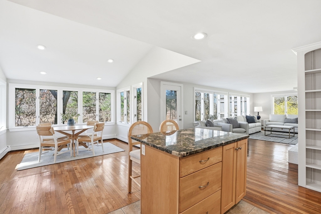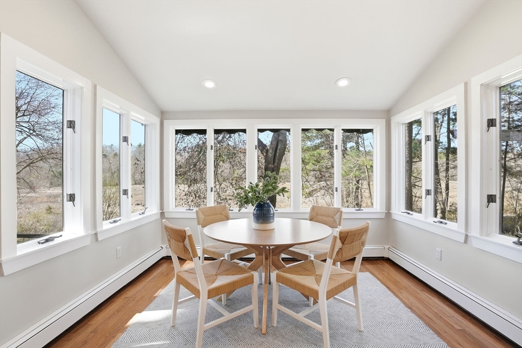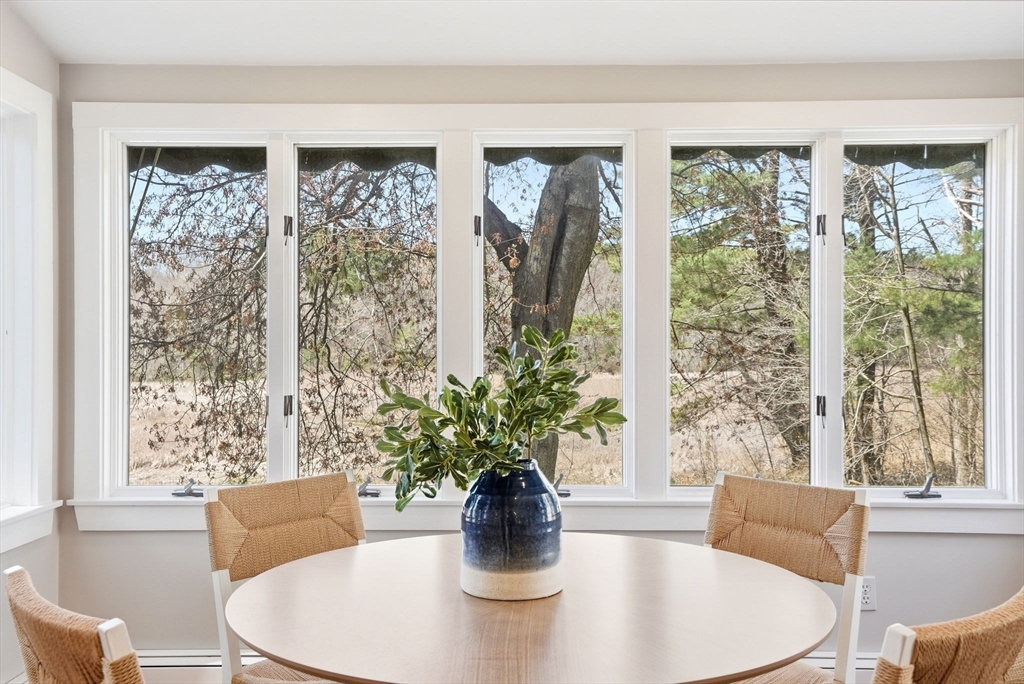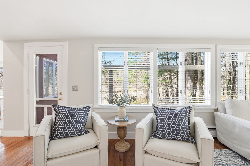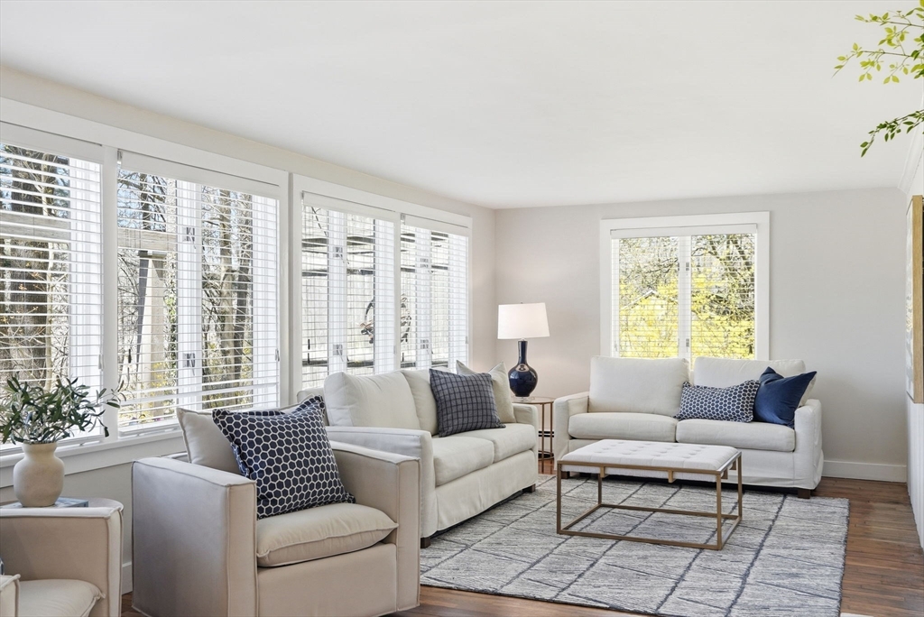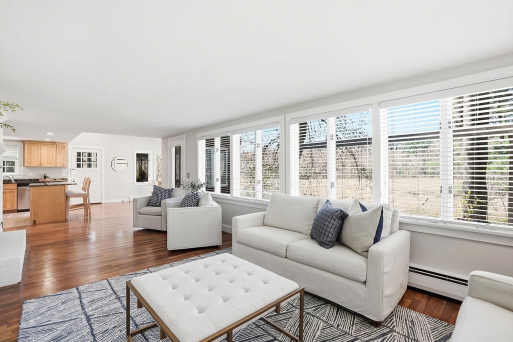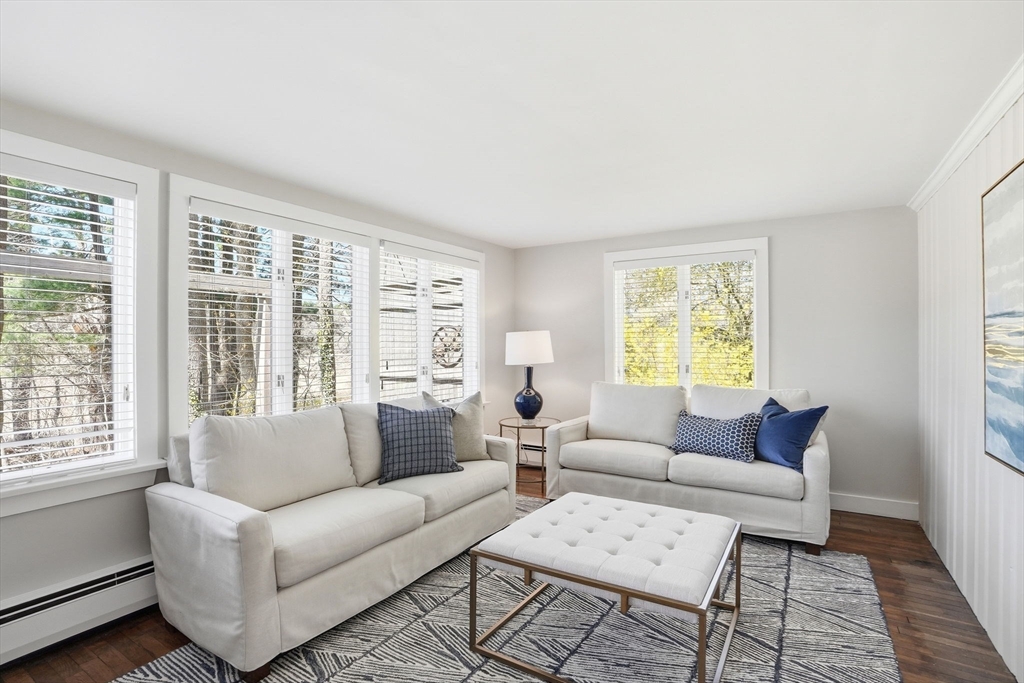 Wake up to river views and end your days with sunsets over the salt marsh. Set on two serene acres overlooking an estuary of the historic North River, this property offers privacy, natural beauty, and effortless indoor-outdoor living. Surrounded by tall trees, lush lawn, and ivy ground cover, the home feels like a retreat. Inside, a bright open floor plan connects kitchen, dining, and living areas, with walls of glass framing the landscape. Step onto the private deck to take in the views. This ranch offers 3 bedrooms, 2 baths, hardwood floors, a fireplace, and gas heat. Detached 2-car garage with storage below. A peaceful yet convenient location.