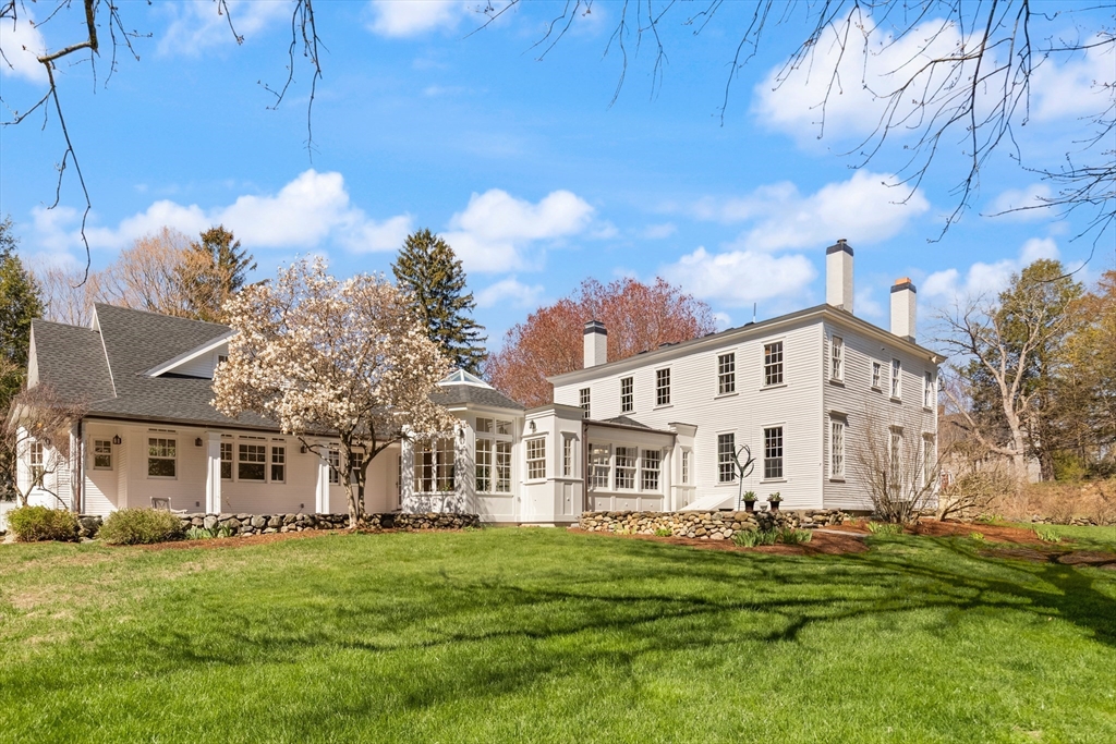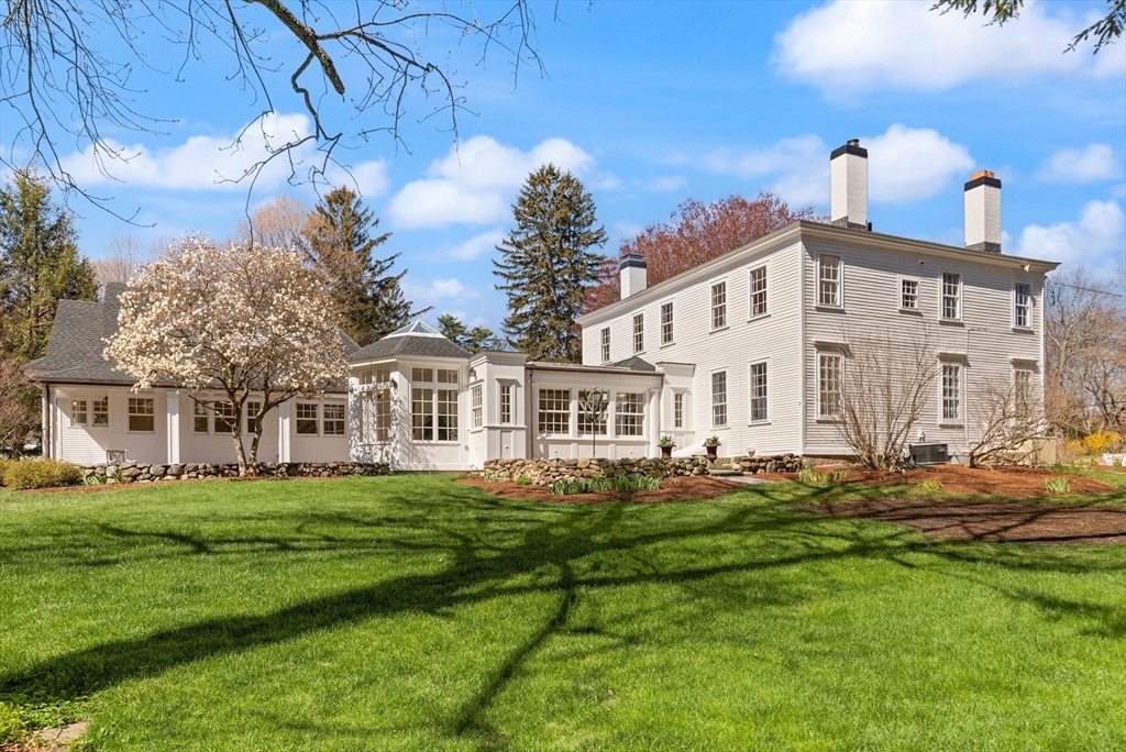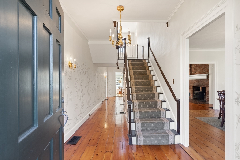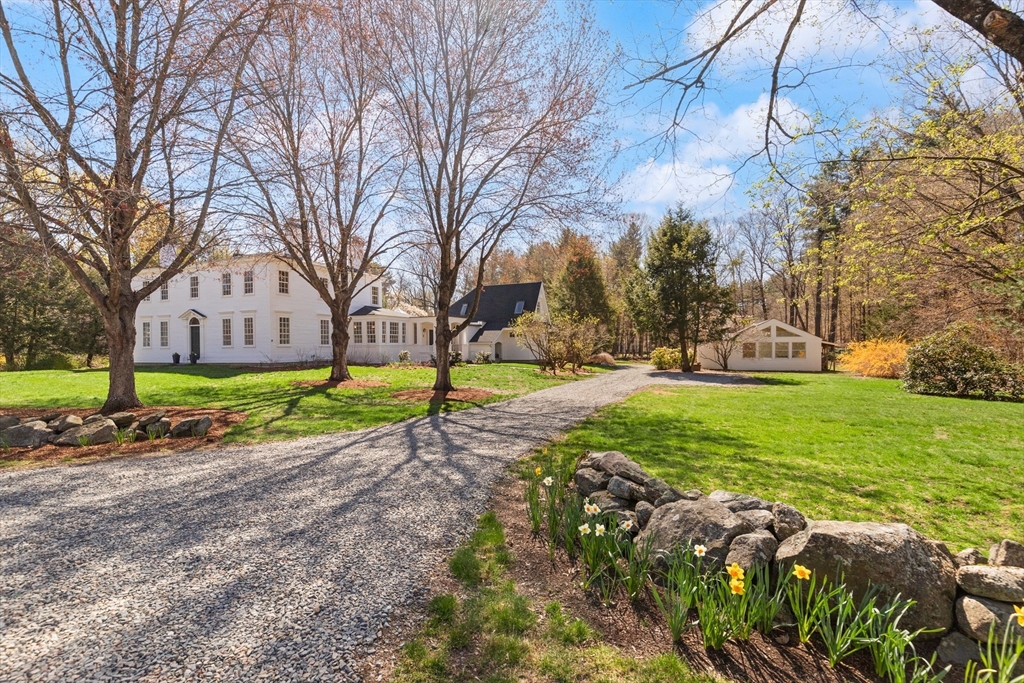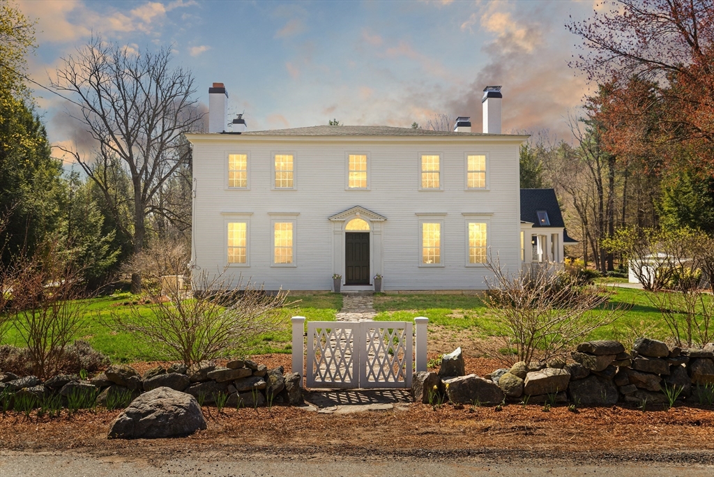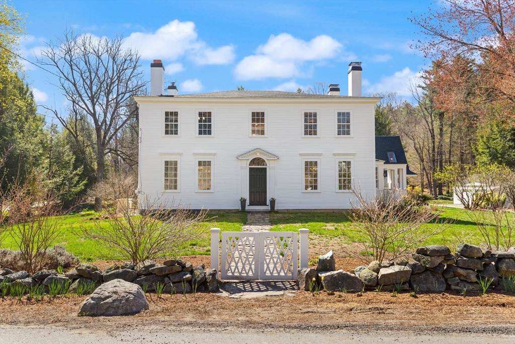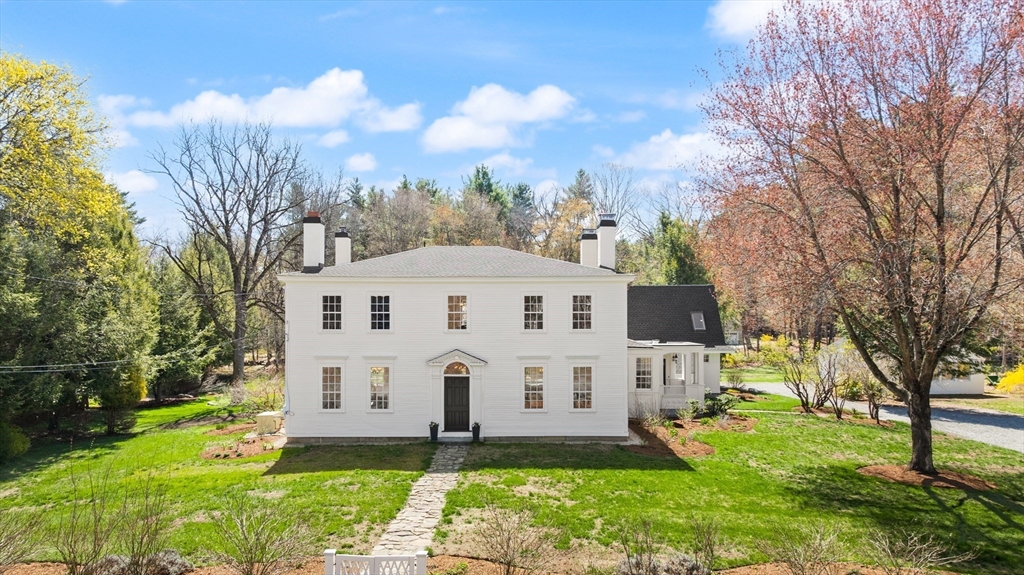 The Benjamin Coleman House, circa 1816, is a distinguished 5 bedroom, 3.5 bath Federal home set amid perennial gardens & mature landscaping. The home showcases exceptional architectural details: sweeping Good Morning staircase, original Federal mantels, wide pine floors, soaring ceilings, front entry w/leaded glass transom & original Indian shutters. A thoughtfully designed addition blends seamlessly w/the original home, featuring luxurious primary suite, private study/loft, turreted sunroom & dramatic rotunda. This beautiful home blends historic character w/modern comfort, featuring 8 fireplaces, remodeled kitchen w/marble countertops & stainless appliances, sunlit family room & generous sized bedrooms. Outside, the property offers a large, level backyard w/mature plantings & detached oversized 2 car garage complete w/artist or exercise studio. This remarkable property offers an opportunity to own a beautifully preserved historic home that pairs timeless elegance with modern living.