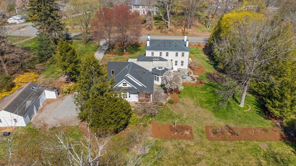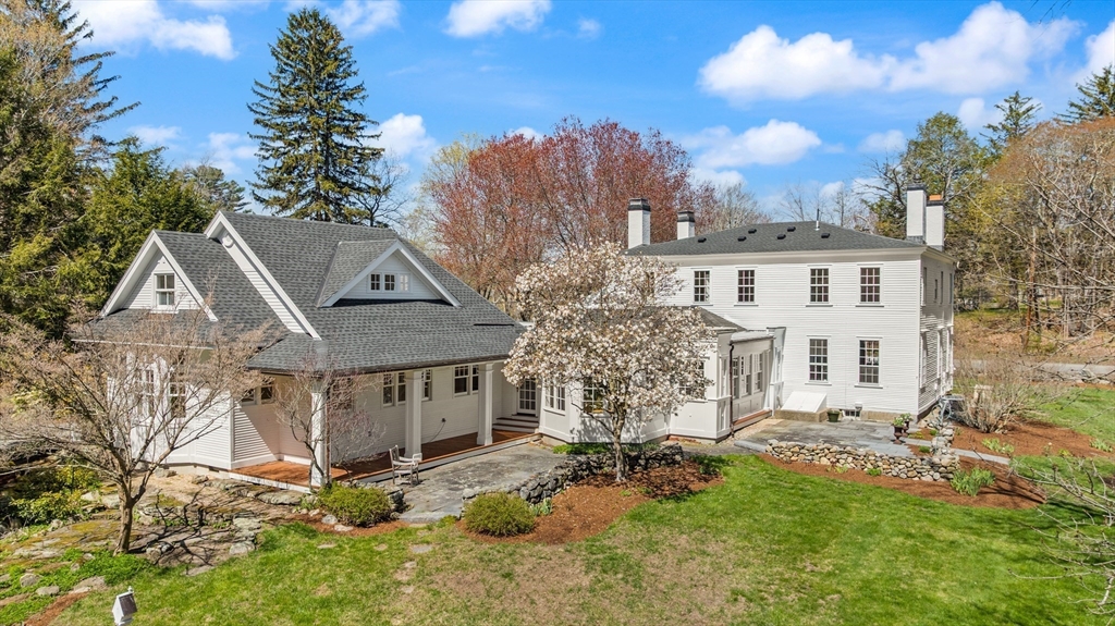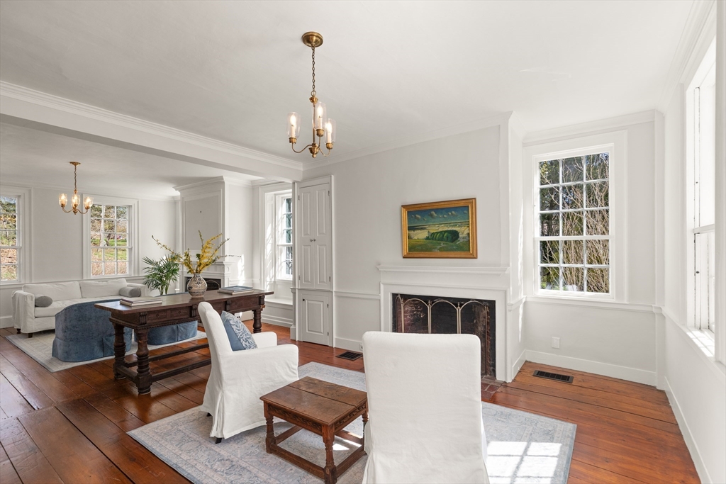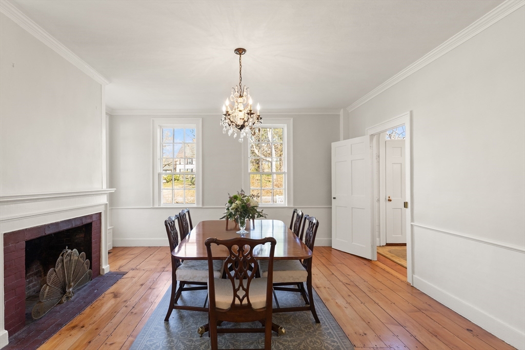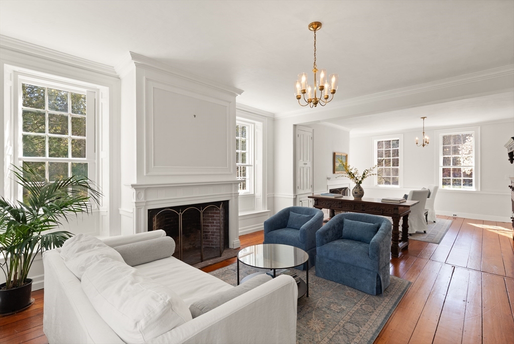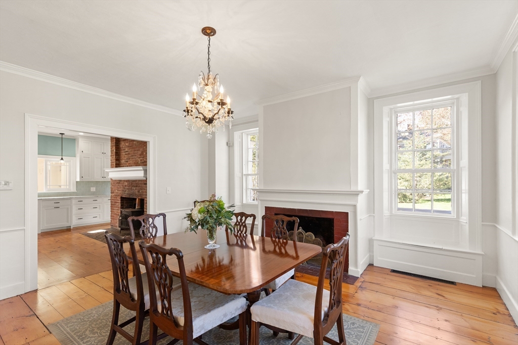 The Benjamin Coleman House, circa 1816, is a distinguished 5 bedroom, 3.5 bath Federal home set amid perennial gardens & mature landscaping. The home showcases exceptional architectural details: sweeping Good Morning staircase, original Federal mantels, wide pine floors, soaring ceilings, front entry w/leaded glass transom & original Indian shutters. A thoughtfully designed addition blends seamlessly w/the original home, featuring luxurious primary suite, private study/loft, turreted sunroom & dramatic rotunda. This beautiful home blends historic character w/modern comfort, featuring 8 fireplaces, remodeled kitchen w/marble countertops & stainless appliances, sunlit family room & generous sized bedrooms. Outside, the property offers a large, level backyard w/mature plantings & detached oversized 2 car garage complete w/artist or exercise studio. This remarkable property offers an opportunity to own a beautifully preserved historic home that pairs timeless elegance with modern living.
