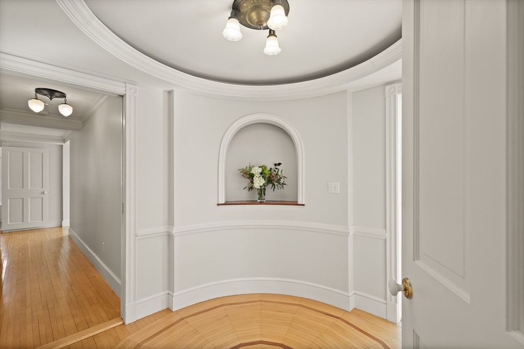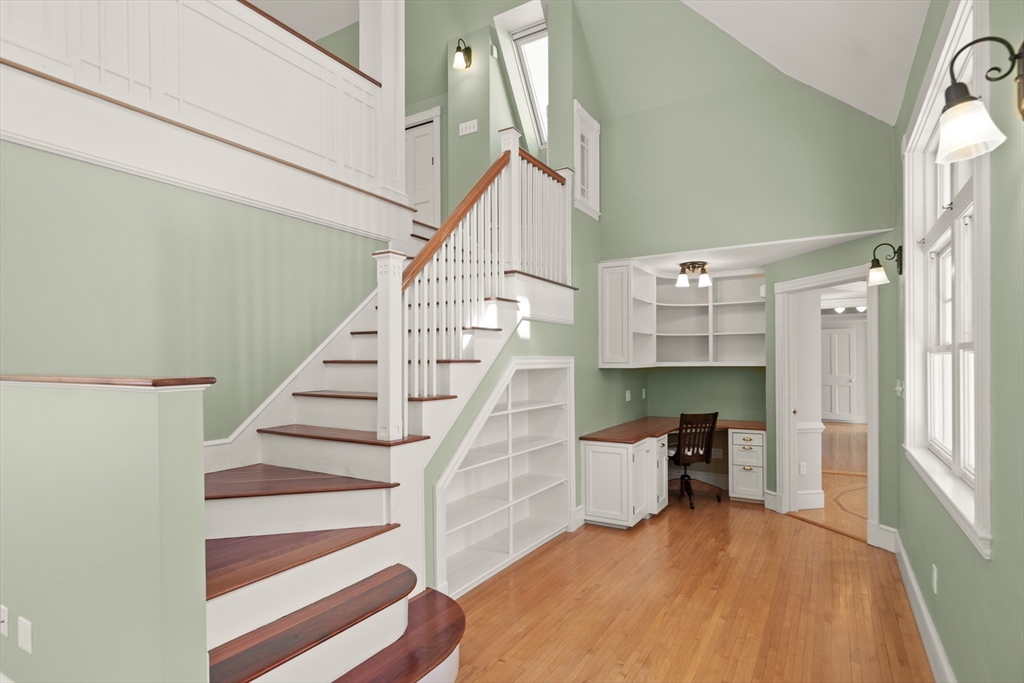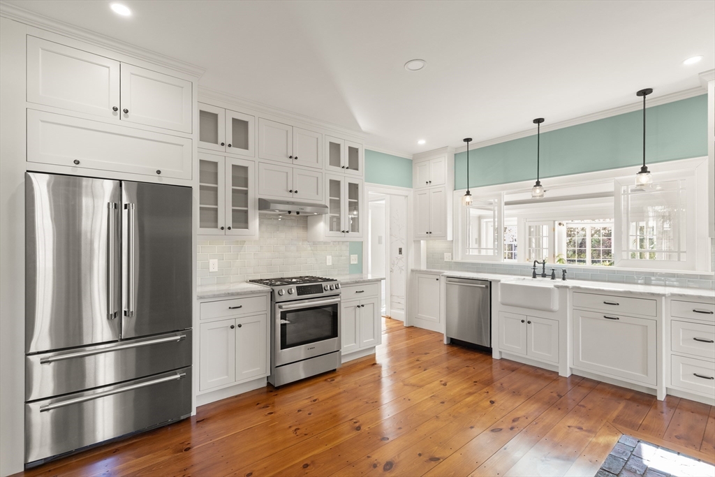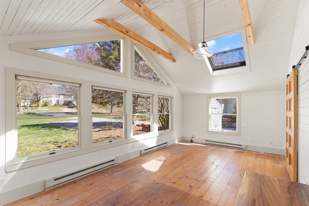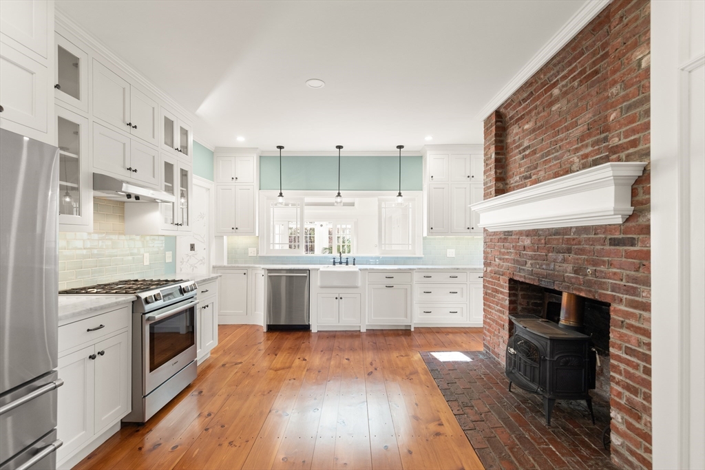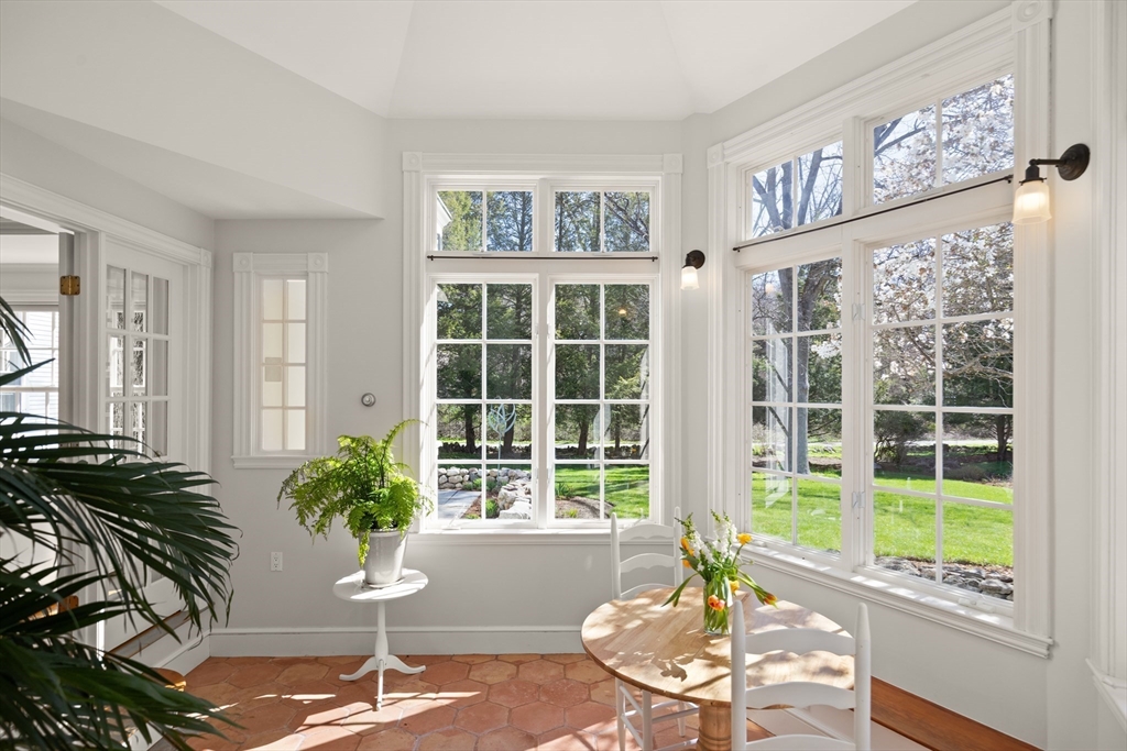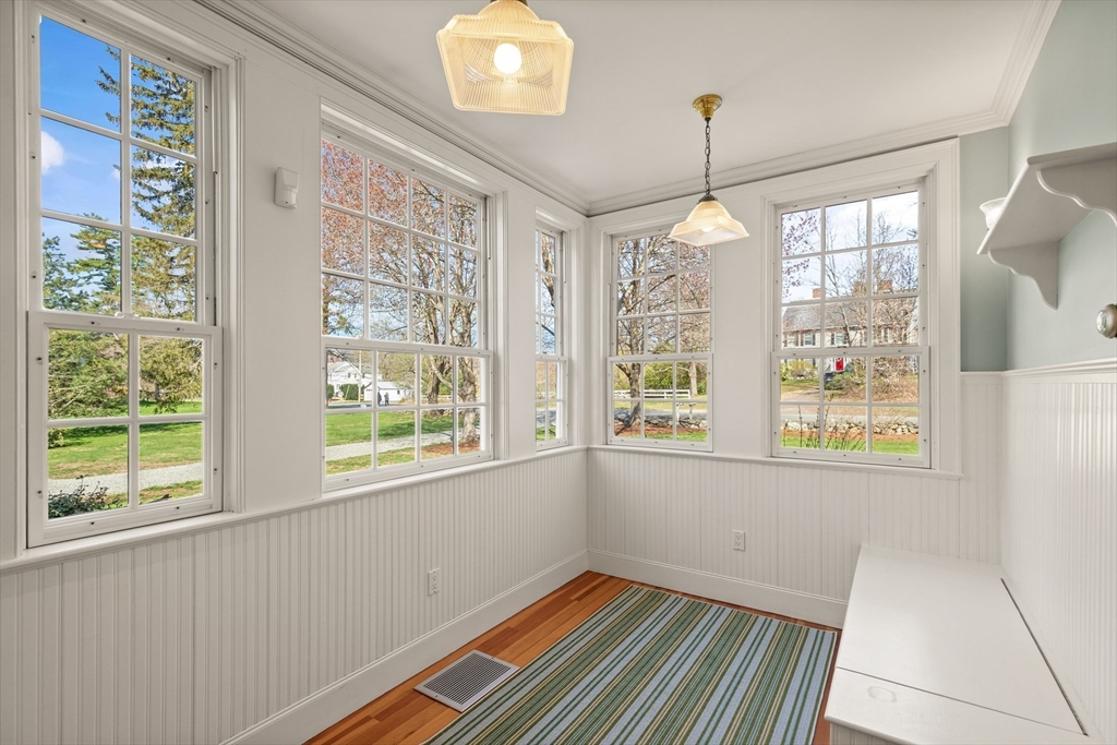 The Benjamin Coleman House, circa 1816, is a distinguished 5 bedroom, 3.5 bath Federal home set amid perennial gardens & mature landscaping. The home showcases exceptional architectural details: sweeping Good Morning staircase, original Federal mantels, wide pine floors, soaring ceilings, front entry w/leaded glass transom & original Indian shutters. A thoughtfully designed addition blends seamlessly w/the original home, featuring luxurious primary suite, private study/loft, turreted sunroom & dramatic rotunda. This beautiful home blends historic character w/modern comfort, featuring 8 fireplaces, remodeled kitchen w/marble countertops & stainless appliances, sunlit family room & generous sized bedrooms. Outside, the property offers a large, level backyard w/mature plantings & detached oversized 2 car garage complete w/artist or exercise studio. This remarkable property offers an opportunity to own a beautifully preserved historic home that pairs timeless elegance with modern living.