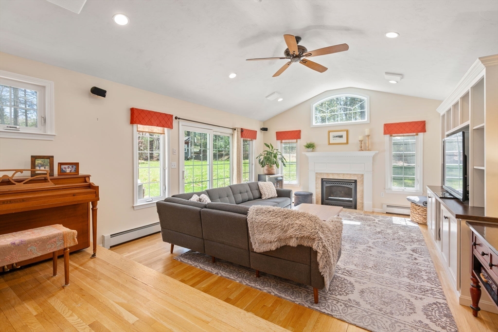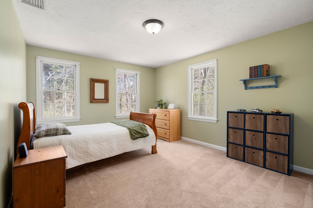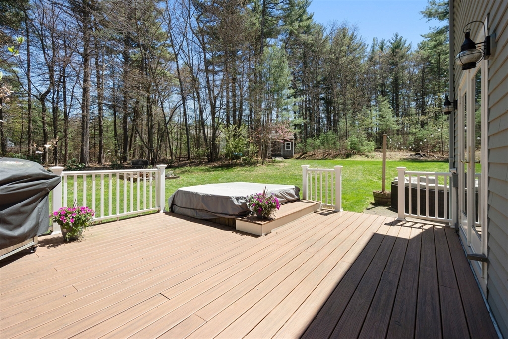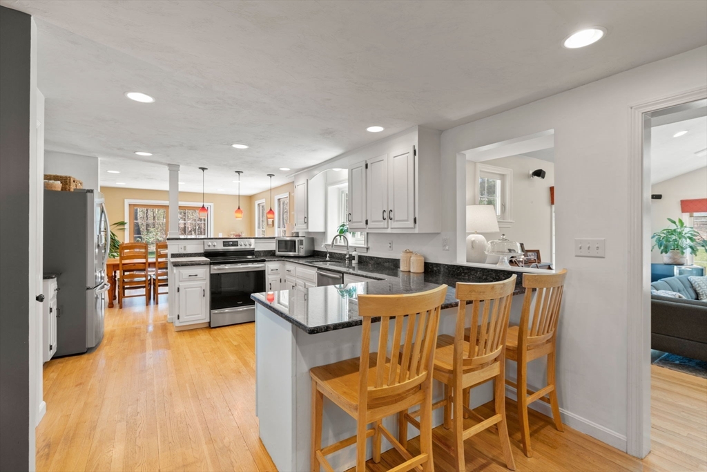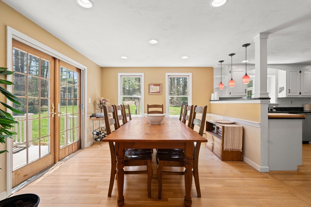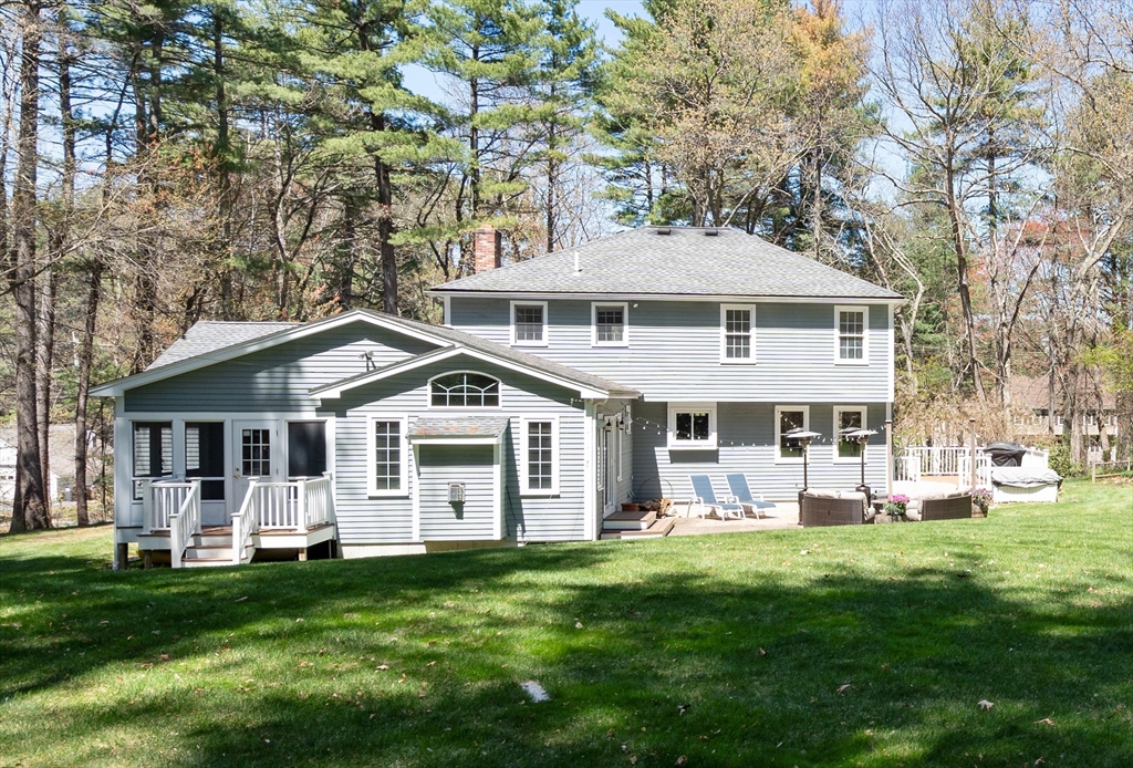 Beautifully updated Colonial nestled on a private 1.27 acre lot. The main level of this warm & inviting home includes a home office & sun filled dining room, both with French doors, & updated kitchen with breakfast bar & dining area open to the living room. The newer addition features a family room with vaulted ceiling, custom built-ins, gas fireplace and French doors to the patio. The mudroom, half bath, laundry and the screen porch for summer dining, complete the first floor addition. The upper level includes a primary bedroom with ensuite bath featuring double sinks & walk-in tile shower, 3 additional spacious bedrooms & a 2nd updated full bath. Finished lower level adds recreational, exercise and office space, and the unfinished area is perfect for a workshop. Wonderful outdoor space for your summer gatherings with composite deck, spacious patio, & large backyard. Steps away are walking trails through Maple St Forest & around Wildflower Stables. Ready for you to make this your home