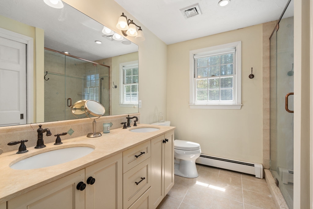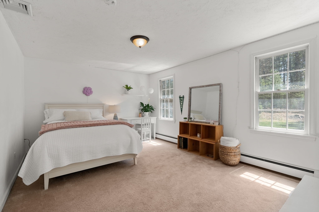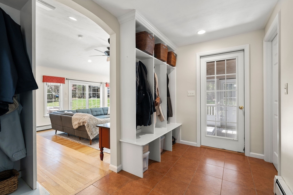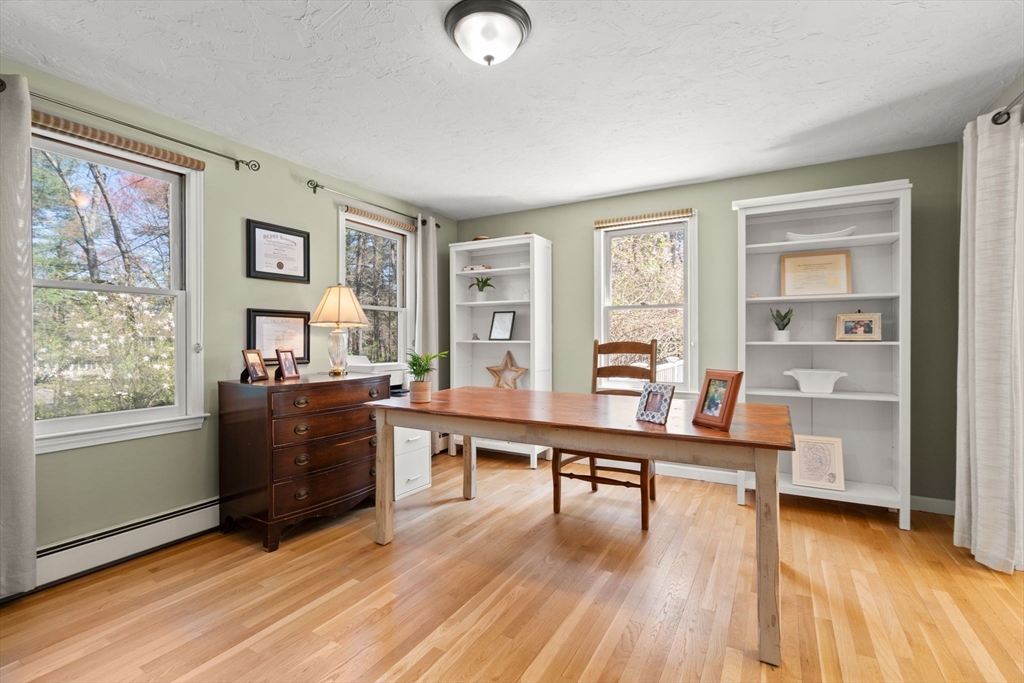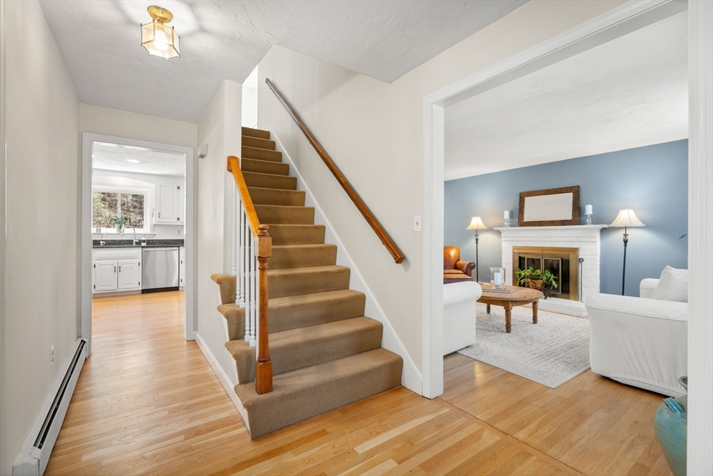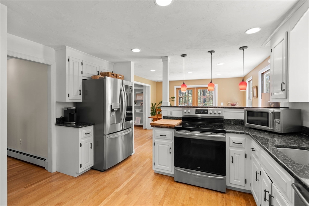 Beautifully updated Colonial nestled on a private 1.27 acre lot. The main level of this warm & inviting home includes a home office & sun filled dining room, both with French doors, & updated kitchen with breakfast bar & dining area open to the living room. The newer addition features a family room with vaulted ceiling, custom built-ins, gas fireplace and French doors to the patio. The mudroom, half bath, laundry and the screen porch for summer dining, complete the first floor addition. The upper level includes a primary bedroom with ensuite bath featuring double sinks & walk-in tile shower, 3 additional spacious bedrooms & a 2nd updated full bath. Finished lower level adds recreational, exercise and office space, and the unfinished area is perfect for a workshop. Wonderful outdoor space for your summer gatherings with composite deck, spacious patio, & large backyard. Steps away are walking trails through Maple St Forest & around Wildflower Stables. Ready for you to make this your home
