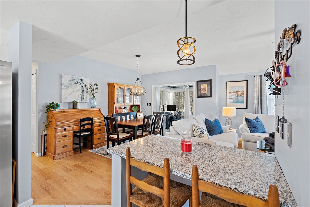 Discover convenient living at River's Edge, a premier 55+ community. This impeccably updated and well maintained residence offers an inviting open layout with updated hardwood floors, and new windows throughout. The renovated kitchen showcases granite countertops, quality appliances, and contemporary lighting. Positioned at a peaceful cul-de-sac, the sunroom provides serene views where you can unwind to the sounds of nature. The primary suite includes a large closet and private ensuite bath. The versatile second room serves beautifully as a guest bedroom or office, complete with hardwood flooring and a cozy gas fireplace. A convenient half bath accommodates guests, while the laundry area remains discreetly concealed behind bifold doors. Thoughtful storage solutions include multiple closets plus a spacious full basement with walkout access. The community clubhouse features a function room, billiards, in ground pool, and fitness center.