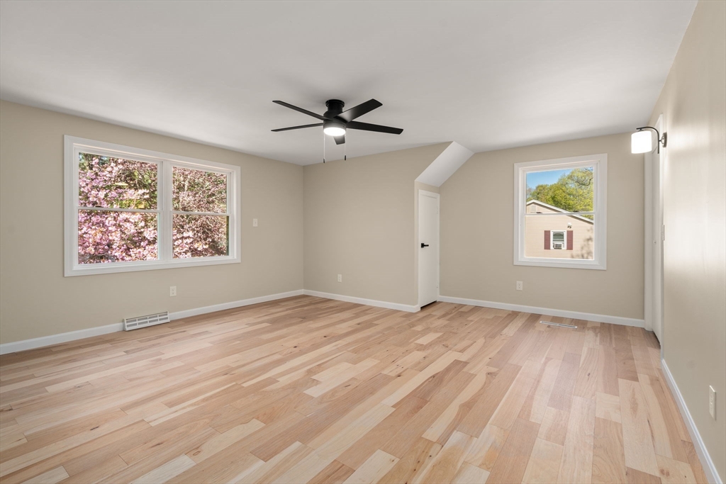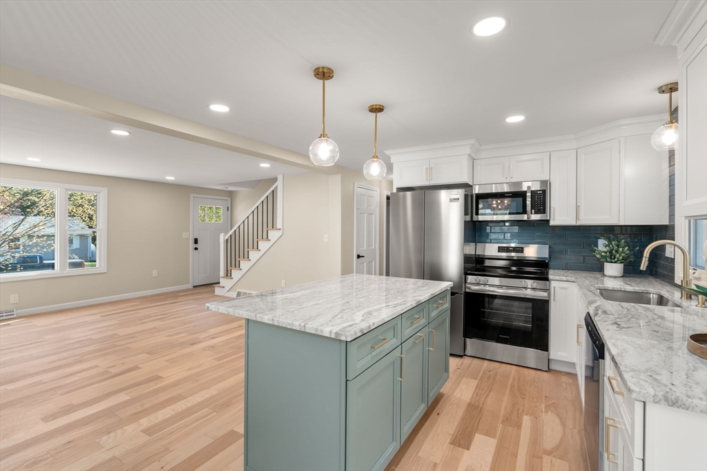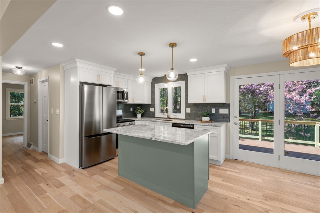 Your turnkey, sun-filled, reimagined Cape in Easthampton awaits. Just a short walk to Plain & Strong St. Playground and minutes to downtown, Nonotuck Park, Mt. Tom, and the Manhan Rail Trail. This move-in ready home has been beautifully updated throughout. The inviting living room features a Chicago window that fills the space with natural light. The open layout flows into a stunning kitchen with new cabinetry, granite countertops, stainless steel appliances, and a center island. A slider off the dining area leads to a new deck overlooking a spacious yard with shed. The flexible floor plan offers two bedrooms and a fully updated bath on the first floor, with two additional bedrooms and another remodeled full bath upstairs. Updates include new siding, hardwood floors, kitchen and baths (2026), plus updated windows, lighting, and roof. All that's left to do is simply unpack and make it yours. Don’t miss your chance to own this beautifully reimagined home—schedule your showing today.