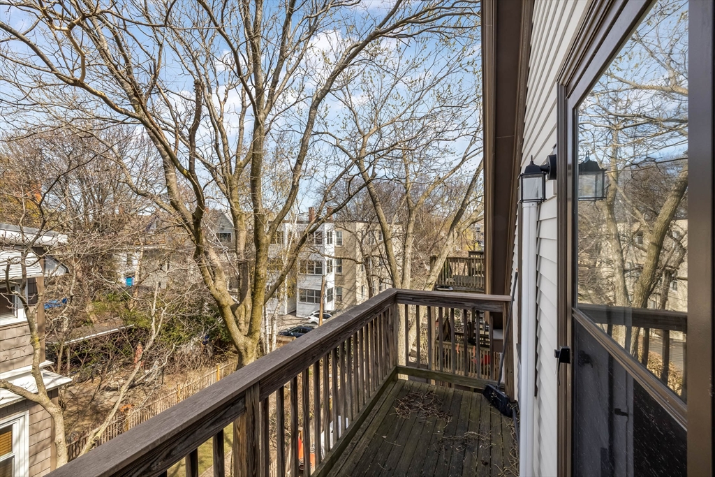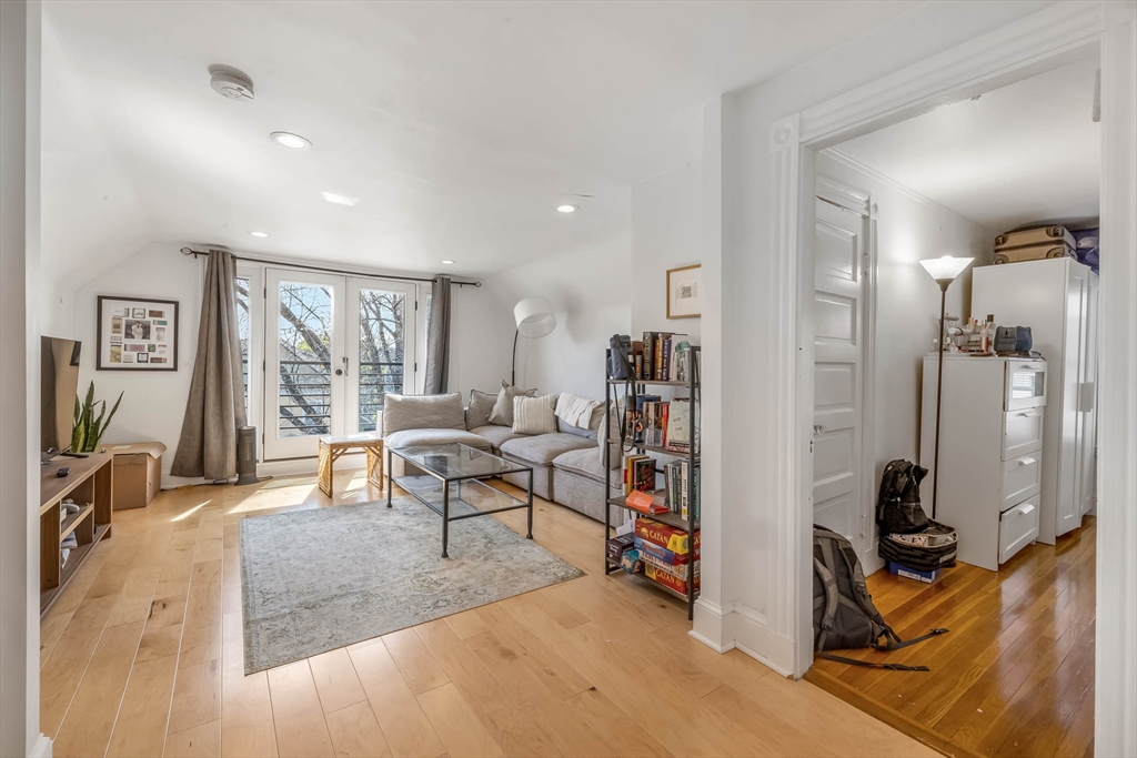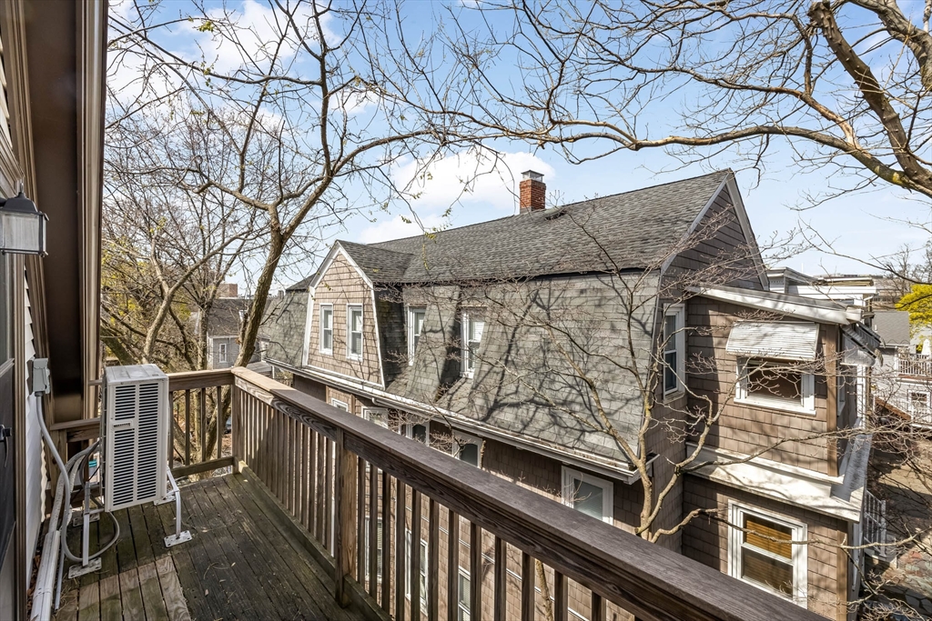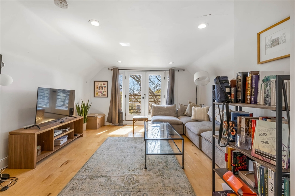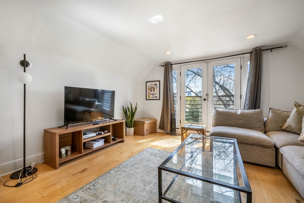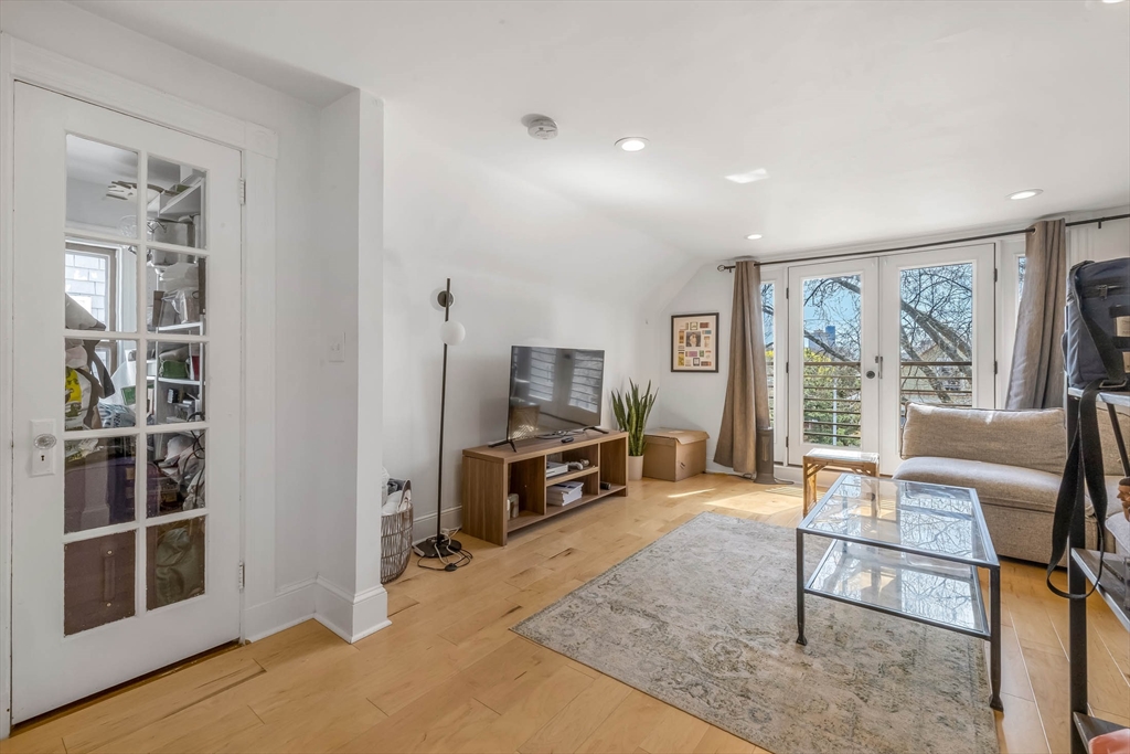 Charming top-floor unit in a fantastic location in Cambridgeport! Situated on a beautiful tree-lined street, this move-in ready condo offers an open-concept layout with seamless flow from kitchen to dining to living, filled with natural light throughout.The kitchen features warm wood countertops and a sunny skylight, creating a bright and inviting space. Step out onto the private rear deck just off the kitchen or open the door in the living room to a charming Juliet balcony.The home includes one well-sized bedroom with two closets and a beautifully designed bathroom with a tiled shower. An additional storage room offers flexibility for use as a pantry, linen closet, or extra storage. The unit also has access to the unfinished basement, providing even more storage space.Ideally located just a few blocks from Trader Joe’s, Whole Foods, Magazine Beach, and close to Central Square, this home offers both comfort and convenience in one of Cambridge’s most desirable neighborhoods.
