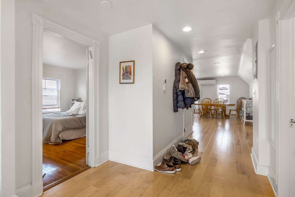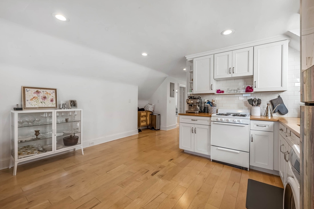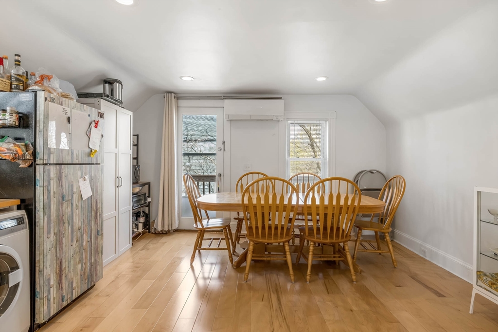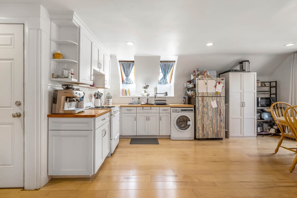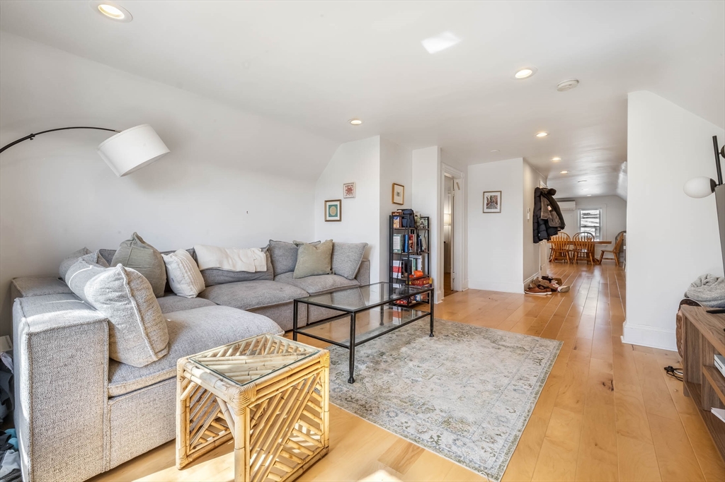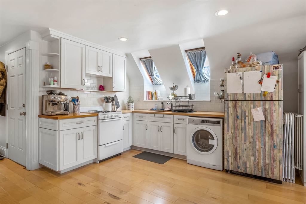 Charming top-floor unit in a fantastic location in Cambridgeport! Situated on a beautiful tree-lined street, this move-in ready condo offers an open-concept layout with seamless flow from kitchen to dining to living, filled with natural light throughout.The kitchen features warm wood countertops and a sunny skylight, creating a bright and inviting space. Step out onto the private rear deck just off the kitchen or open the door in the living room to a charming Juliet balcony.The home includes one well-sized bedroom with two closets and a beautifully designed bathroom with a tiled shower. An additional storage room offers flexibility for use as a pantry, linen closet, or extra storage. The unit also has access to the unfinished basement, providing even more storage space.Ideally located just a few blocks from Trader Joe’s, Whole Foods, Magazine Beach, and close to Central Square, this home offers both comfort and convenience in one of Cambridge’s most desirable neighborhoods.