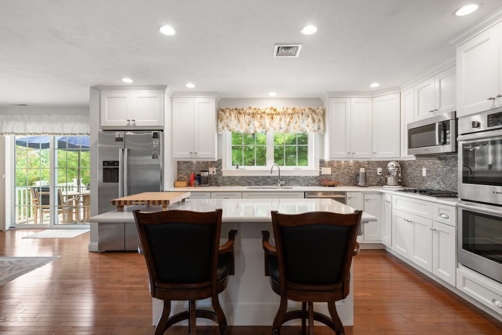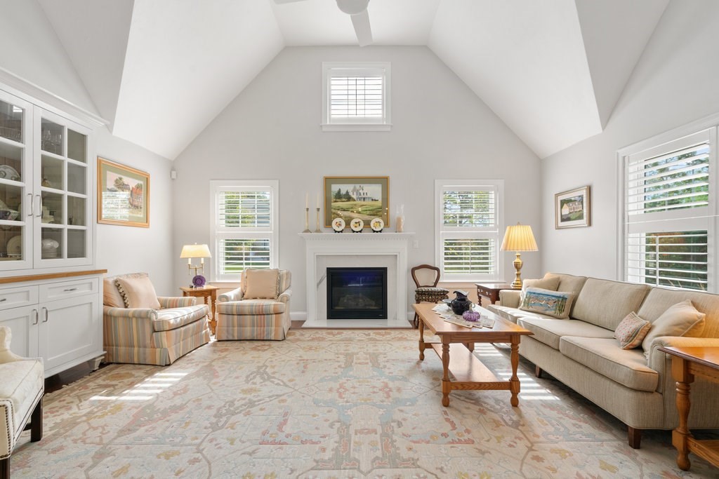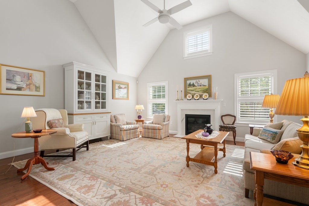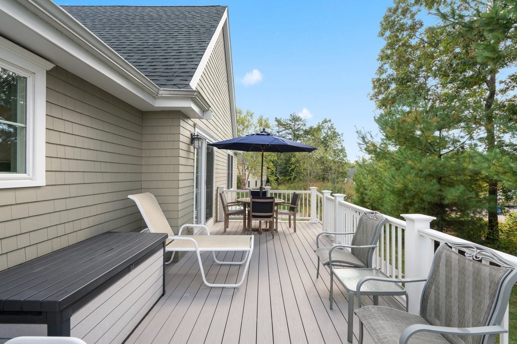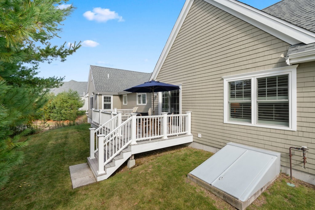 Welcome to easy living in Seton Highlands at The Pinehills. This beautifully upgraded free-standing home offers an open-concept layout with cathedral ceilings and a sun-filled living room centered around a quartz-surround gas fireplace. The bright kitchen features upgraded white cabinetry, Bosch stainless steel appliances, double ovens, a gas cooktop, glass tile backsplash, and pull-out shelving. The dining area opens to a spacious composite deck overlooking a private backyard—perfect for relaxing or entertaining. A separate den provides flexible space for a home office or retreat. The primary suite includes a tray ceiling, custom blinds, walk-in closet, and ensuite bath. A guest bedroom and full bath complete the home. Enjoy low-maintenance living in one of the area’s most desirable 55+ communities.