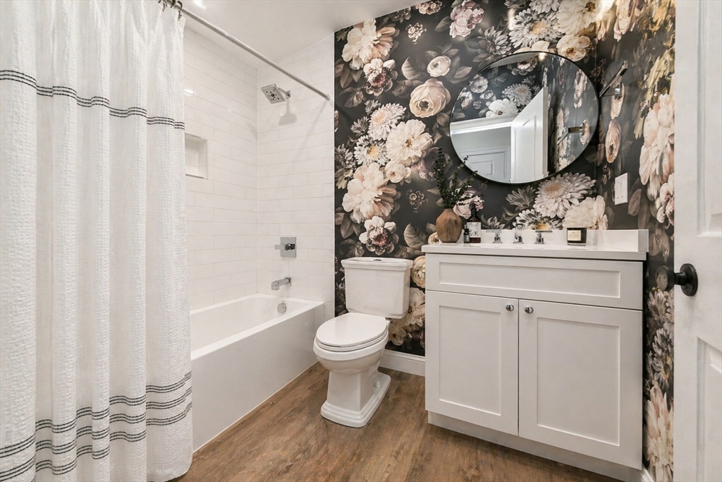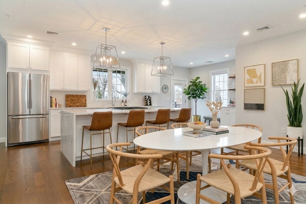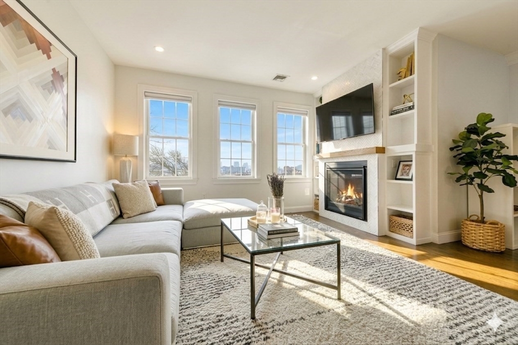 Experience the pinnacle of urban luxury, where stunning unobstructed views of the Boston Harbor and city skyline take center stage. Built in 2019, this sophisticated 1,241+/- sf condo offers integrated single-floor living defined by high-end craftsmanship & modern construction. Natural light saturates the open-concept interior, anchored by a gourmet kitchen w/a striking waterfall island, a fully equipped dry bar & spacious LR w/gas FP framed by custom built-in. The primary suite offers a private retreat w/a marble en-suite shower, vanity + generous closet space. A versatile guest BR features a custom Murphy bed maximizing both comfort & functionality. Add'tl highlights: in-unit W/D, private balcony, deeded parking, & access to an expansive common roof deck. This is a turnkey opportunity to own a front-row seat to the best views in the city. Positioned just across the bridge, this home offers a premier East Boston alternative - combining unparalleled convenience & luxury w/o compromise.